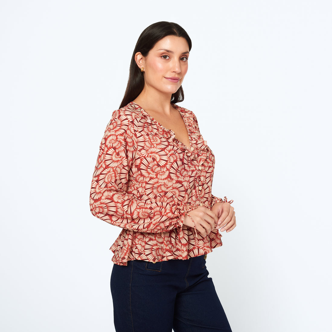 Nuestra blusa Illari, confeccionada en seda, destaca por su encantador print, mangas abullonadas y escote...