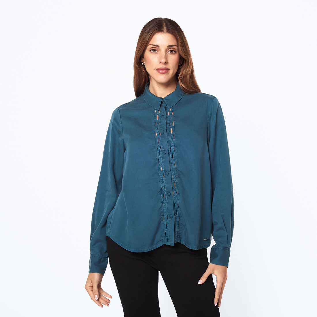Inspiración atemporal con toque moderno. La Blusa Tiziana en tono turquesa y confección en tencel,...