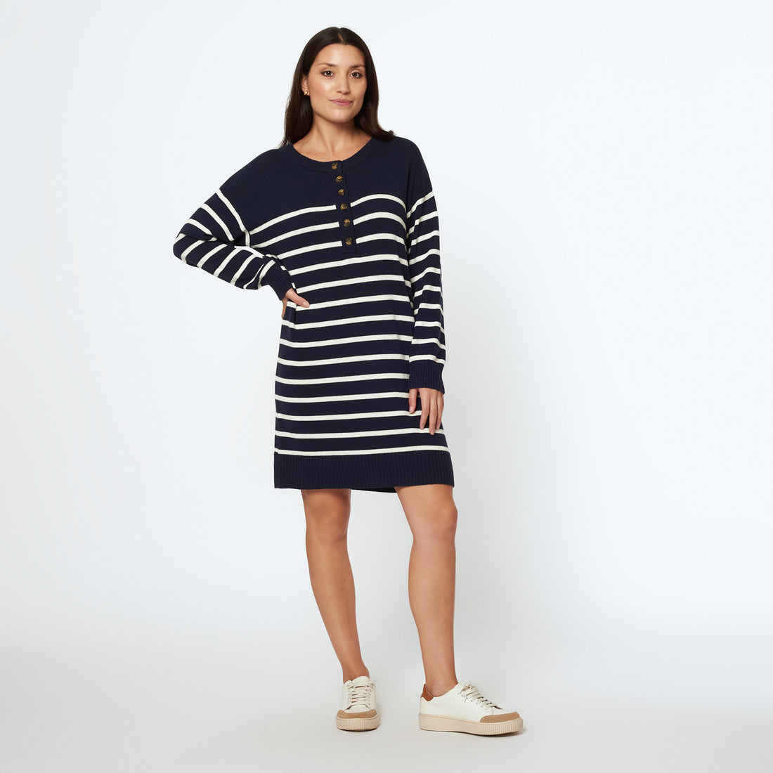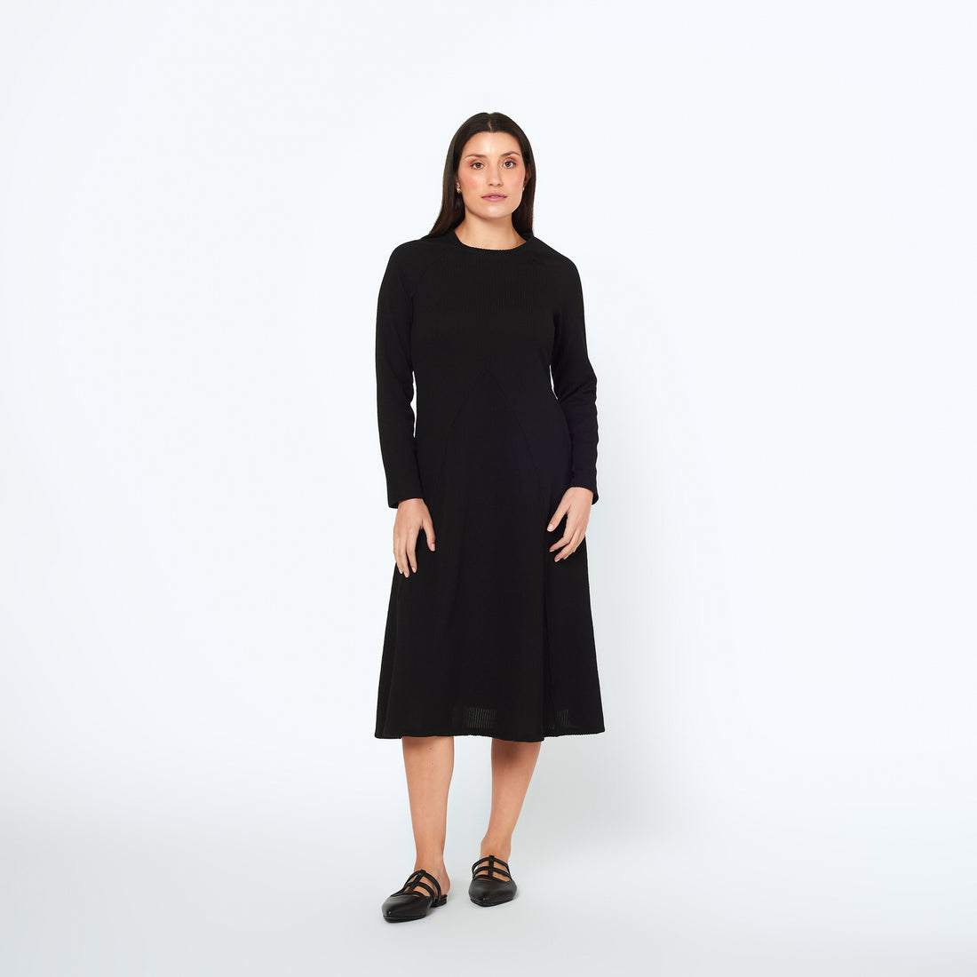 El vestido Doris presenta un fit midi, manga larga y cuello redondo con detalle de...