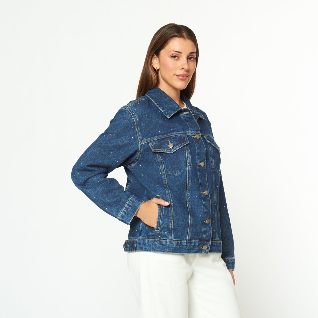 Chaqueta entallada cuello camisero y botones de metal. Composición: 80% POLIESTER, 18% RAYON, 2% SPANDEX...