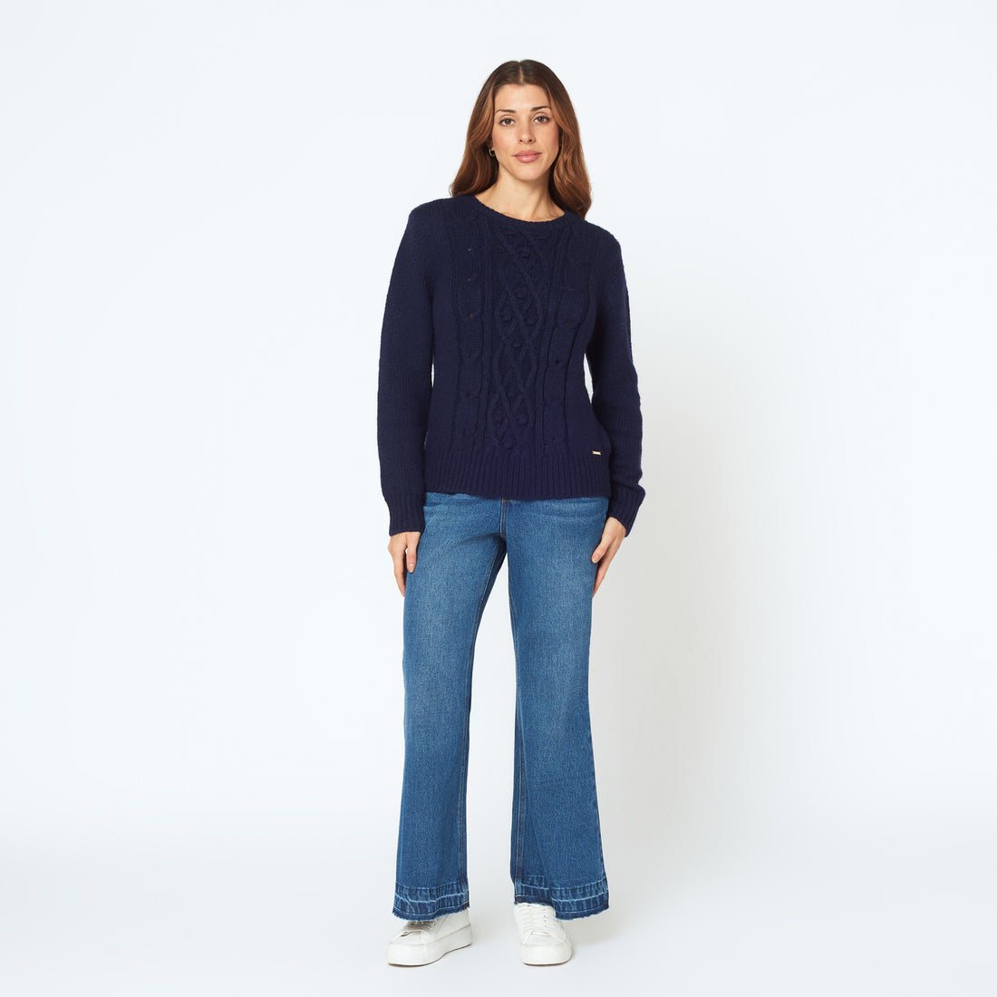 ¡Añade un toque de calidez a tus días con la chompa Rada! Confeccionada en tejido...