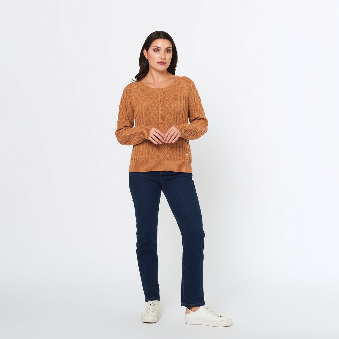 La chompa Sharon, en color camel, es un clásico renovado. Su confección en tejido de...