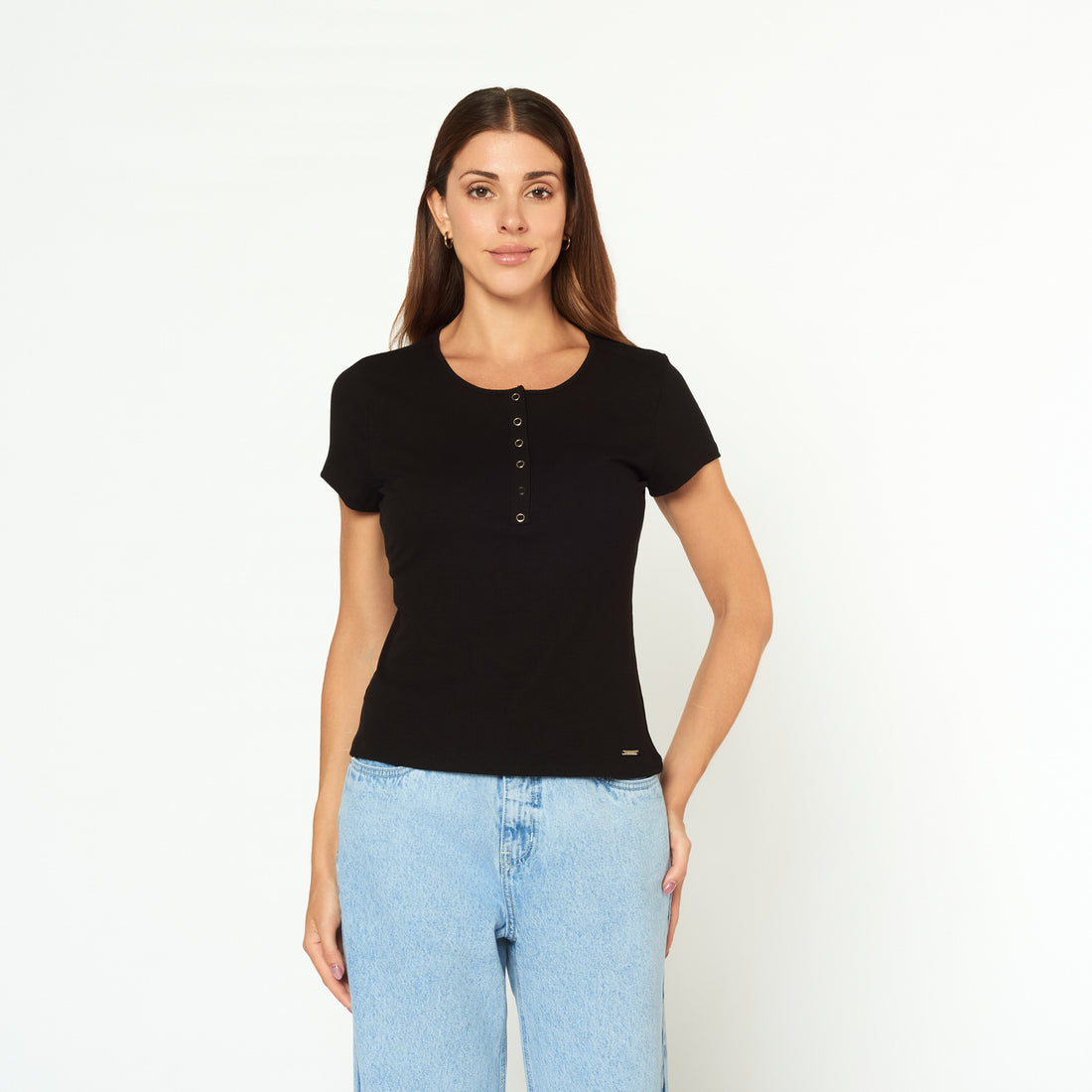 Polo manga corta con escote abierto y botones a presión. Composición: 95% RAYON, 5% SPANDEX....