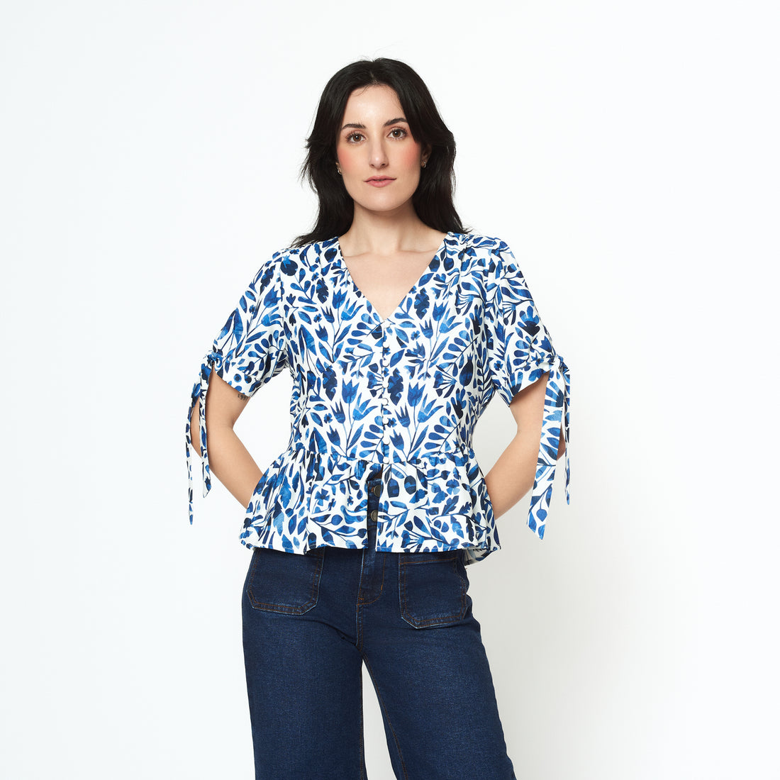 La Blusa Celeste en print destaca por su estilo fresco y actual. Su diseño estampado...