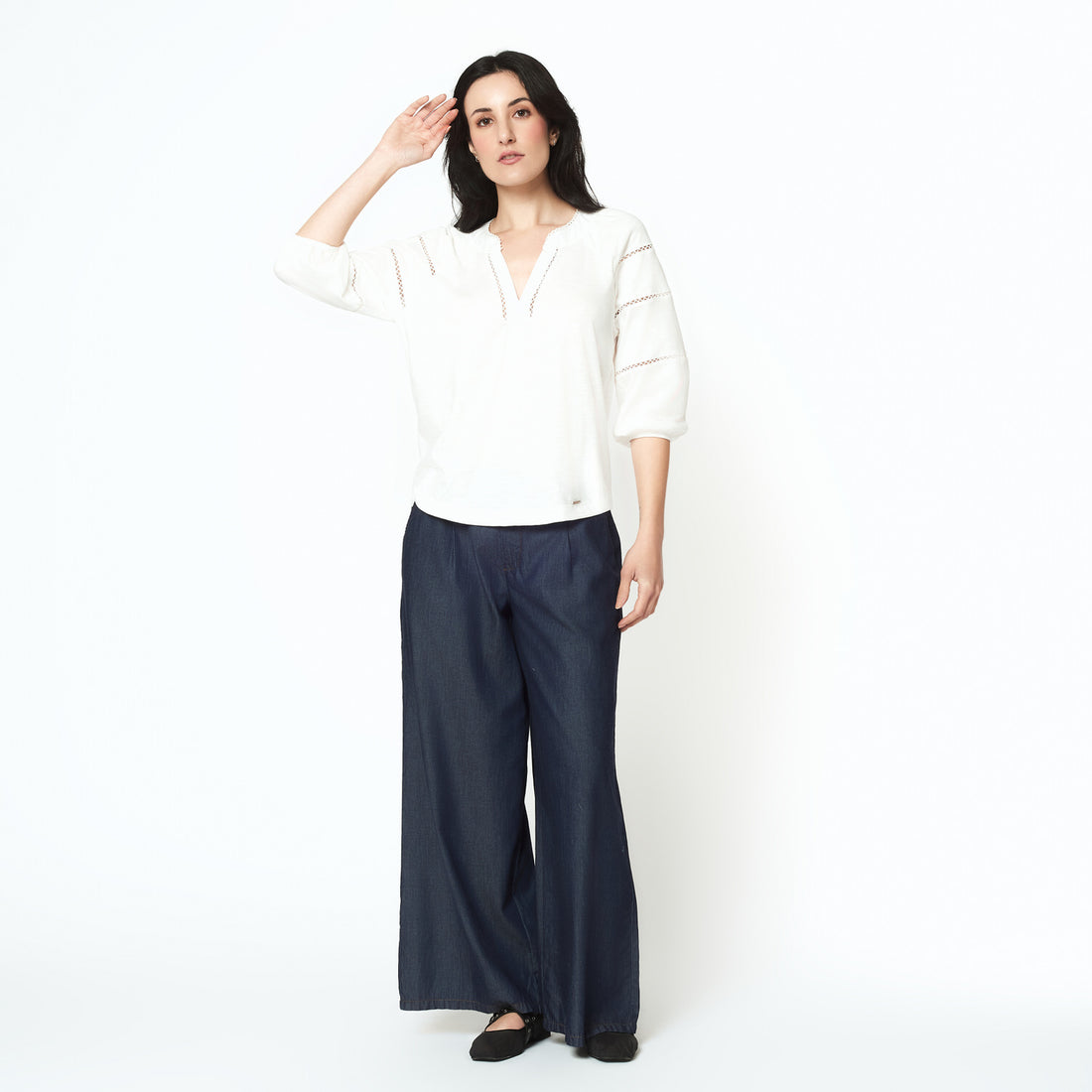 El Pantalón Jazmín en azul es fresco y sofisticado. Su color aporta fuerza y estilo,...