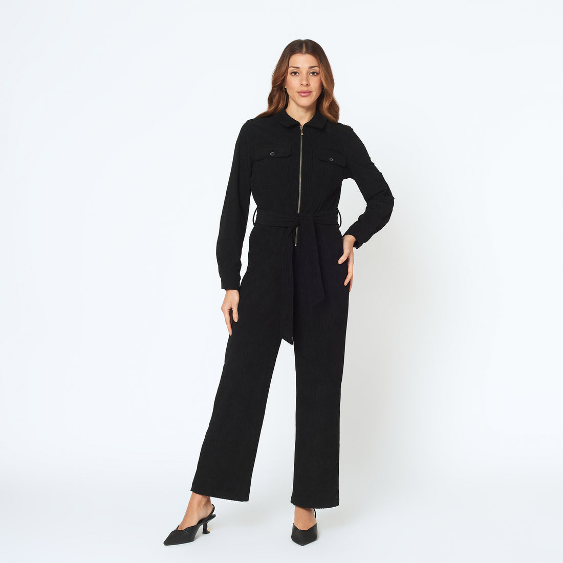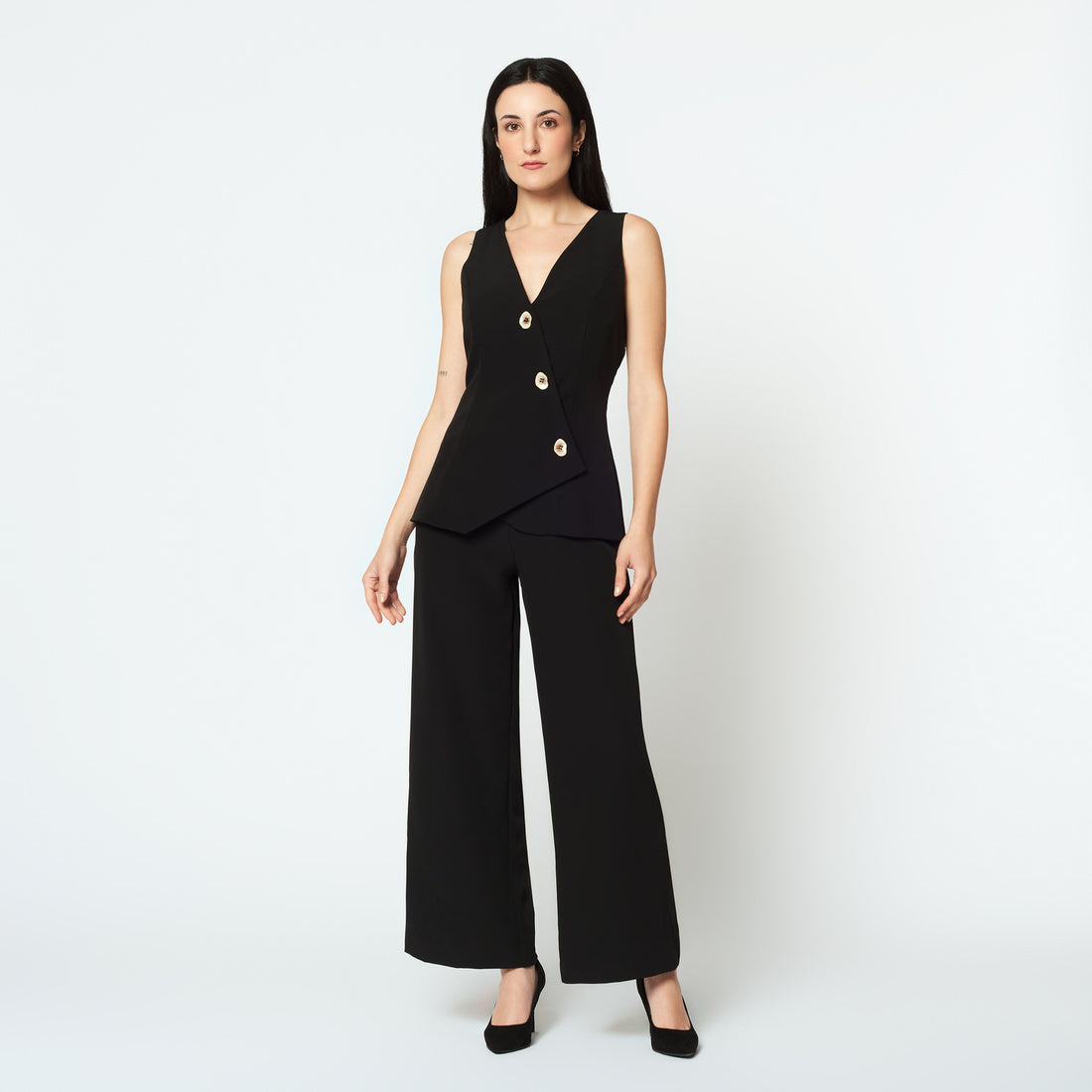 El enterizo Isidra en tela sastre negra une estructura y sofisticación en un diseño versátil....