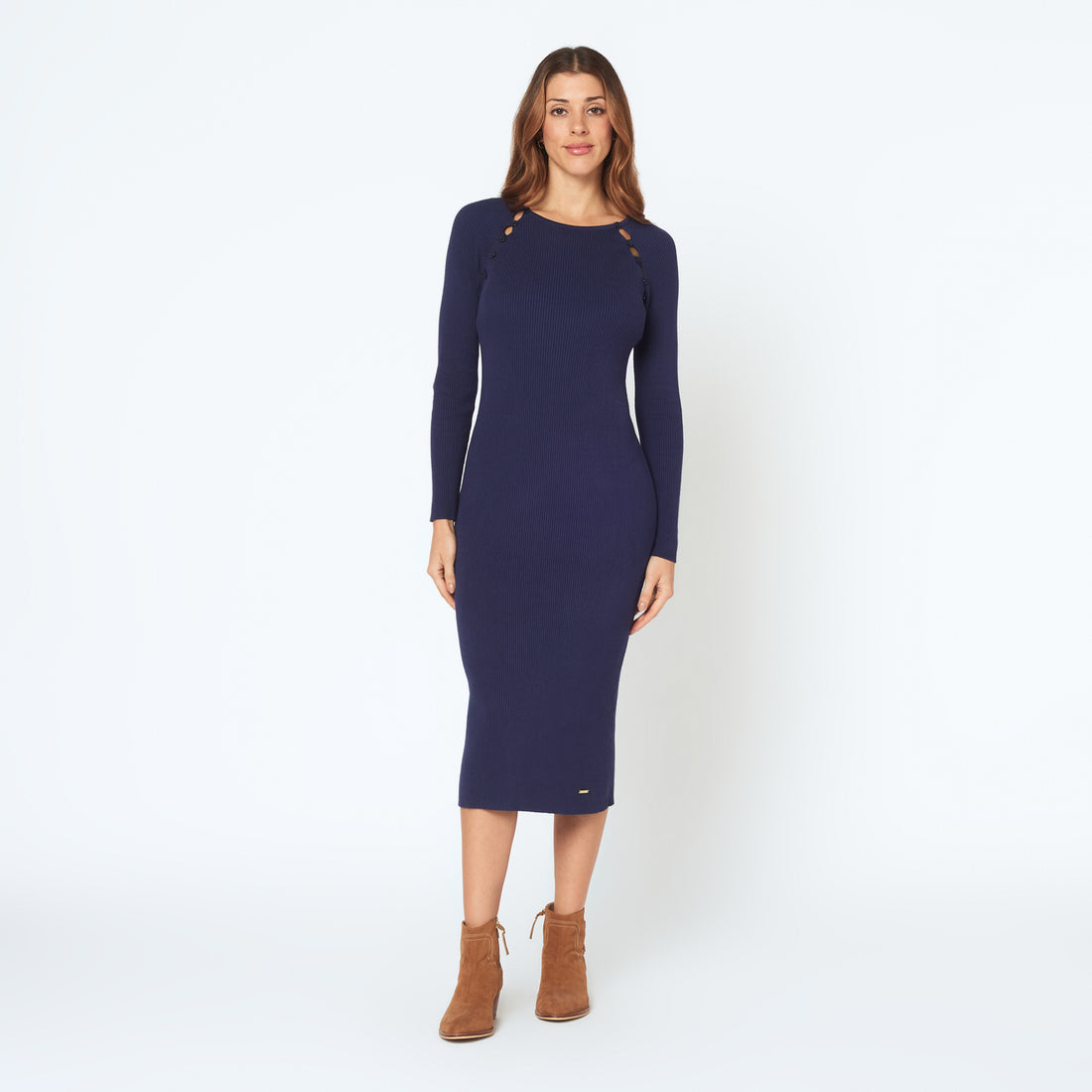 El Vestido Aura en azul es sobrio y refinado. Su tono clásico transmite elegancia, perfecto...