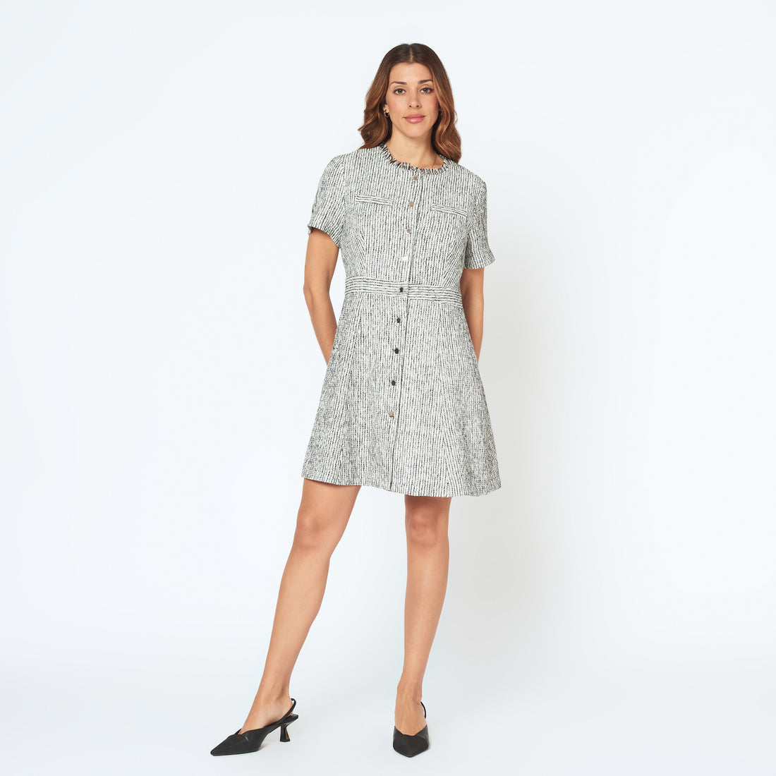 Descubre la elegancia con el vestido Milu. Confeccionado en tweed en un delicado color negro,...