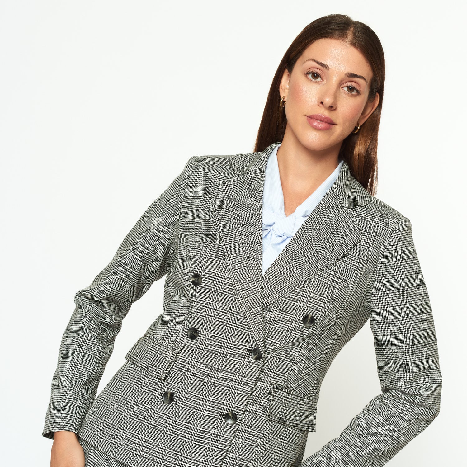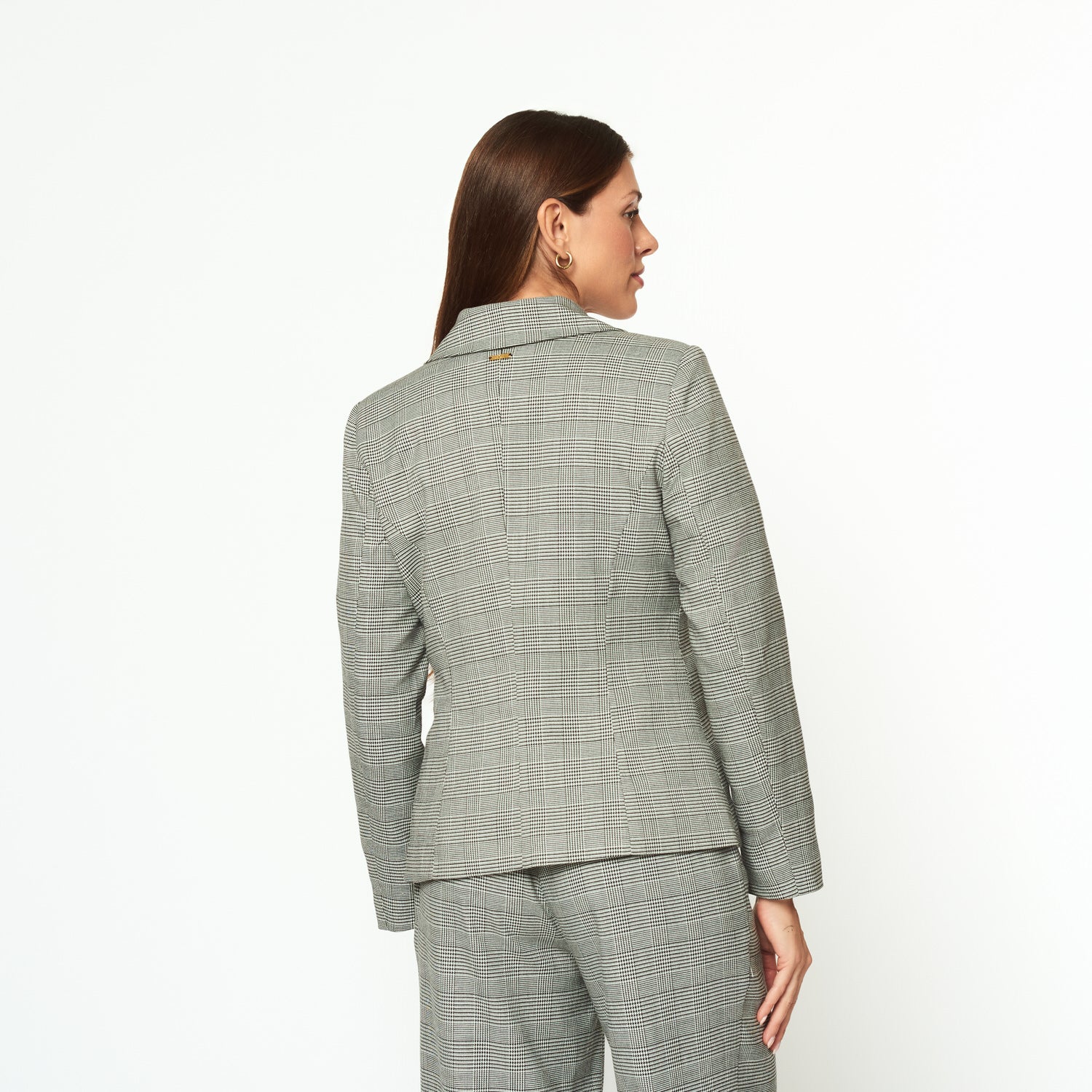 Blazer de fit regular con print a cuadros y botones decorativos en el cuerpo.