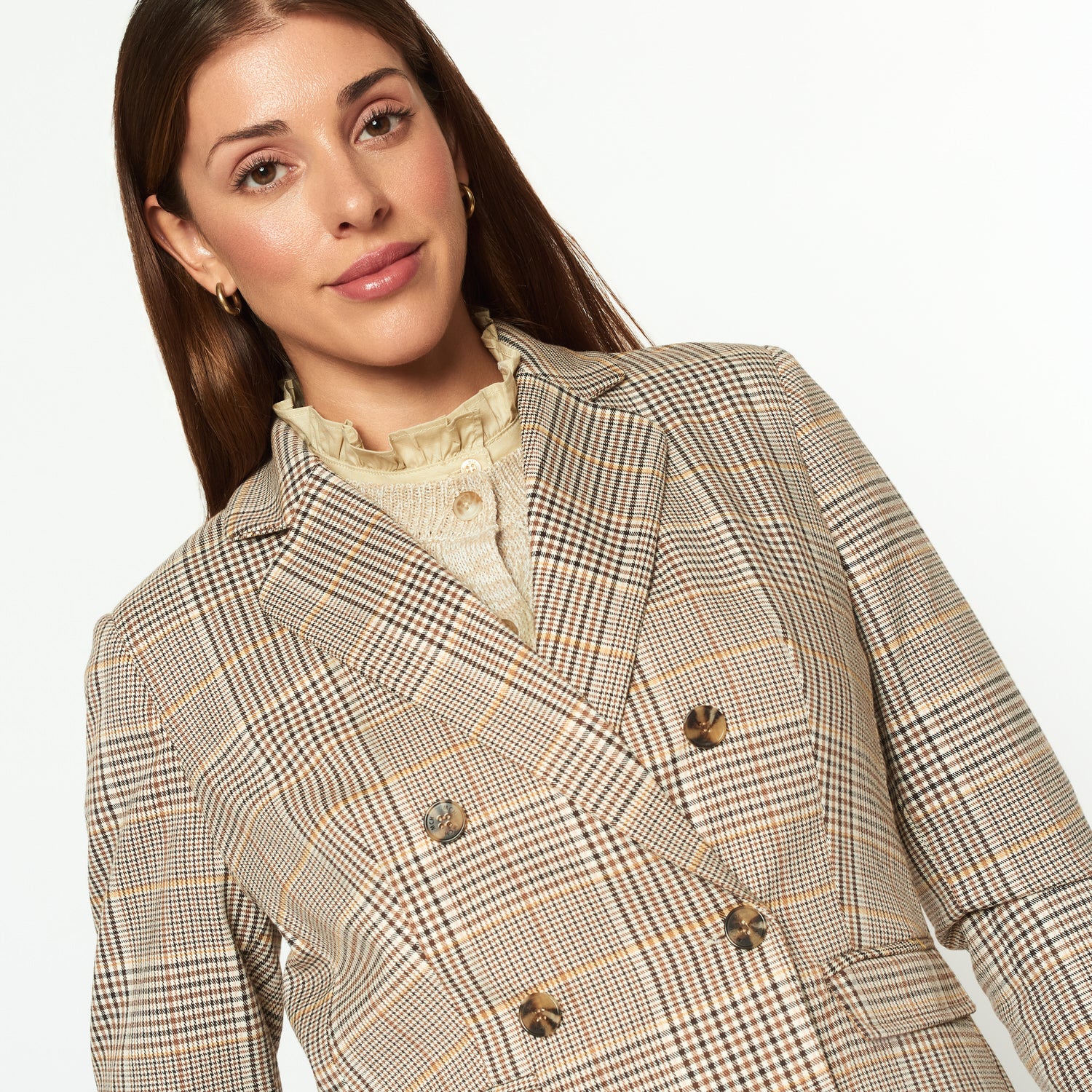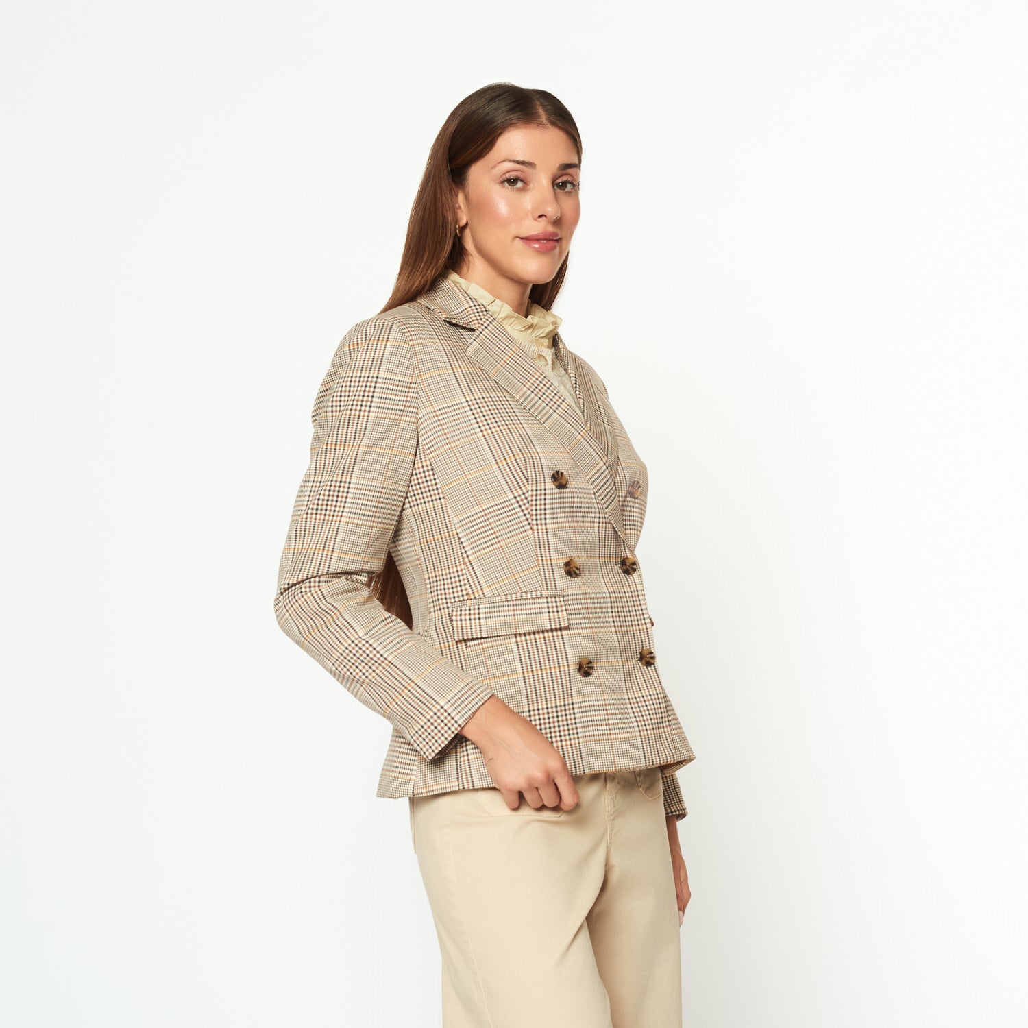 Blazer de fit regular con print a cuadros y botones decorativos en el cuerpo.
