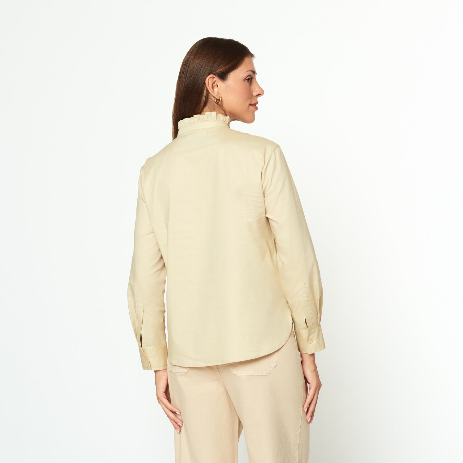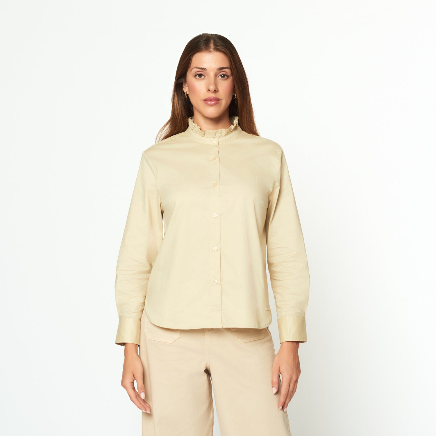 Blusa manga larga con cuello imperial y puño ancho.