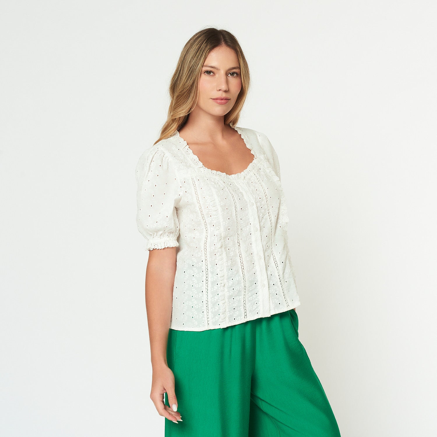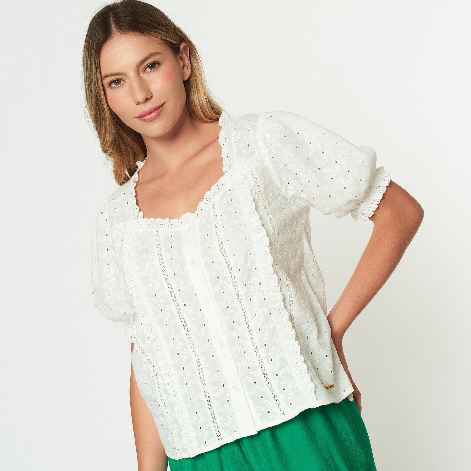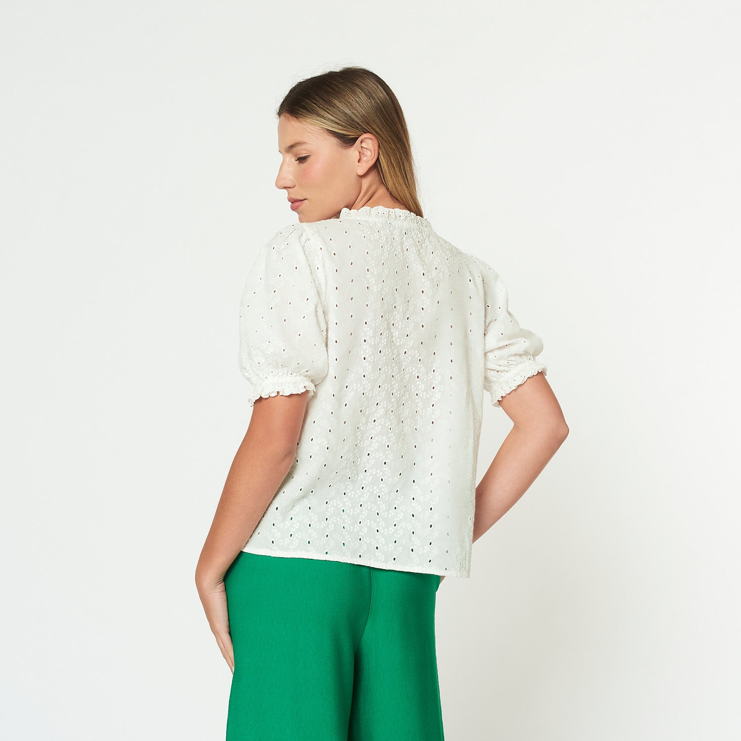 La Blusa Constanza en hueso es un clásico de sobriedad y estilo. Su tono neutro transmite elegancia y versatilidad, perfecta para un look atemporal.