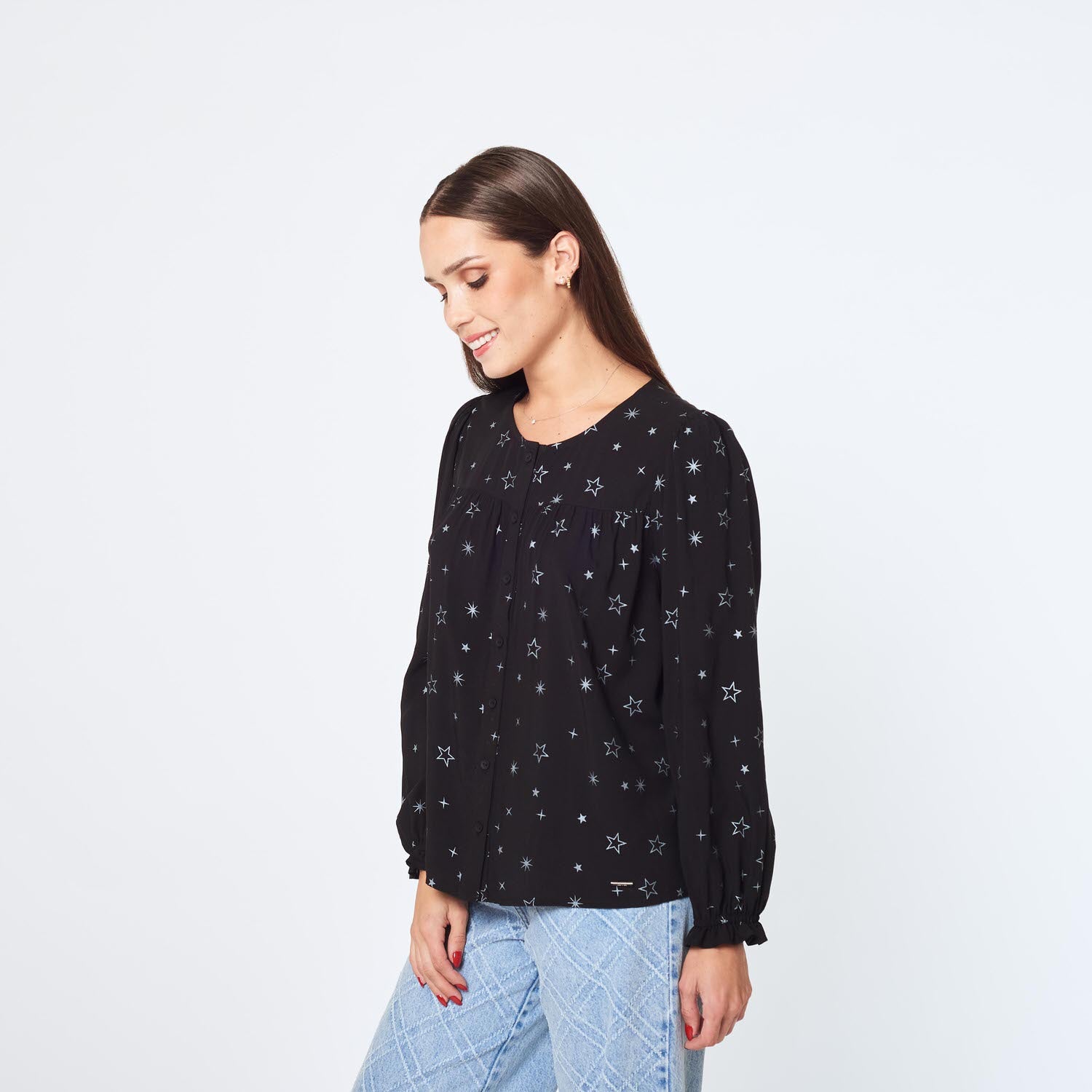 ¡Nuestra blusa Gabriela manga larga en color negro es la definición del estilo rockstar! Con su estampado de estrellas, añade un toque audaz y vibrante a cualquier conjunto. Los detalles cuidadosamente diseñados hacen que esta blusa sea una pieza imprescindible para elevar tu look al siguiente nivel. ¡Prepárate para brillar con estilo y actitud con esta increíble blusa!