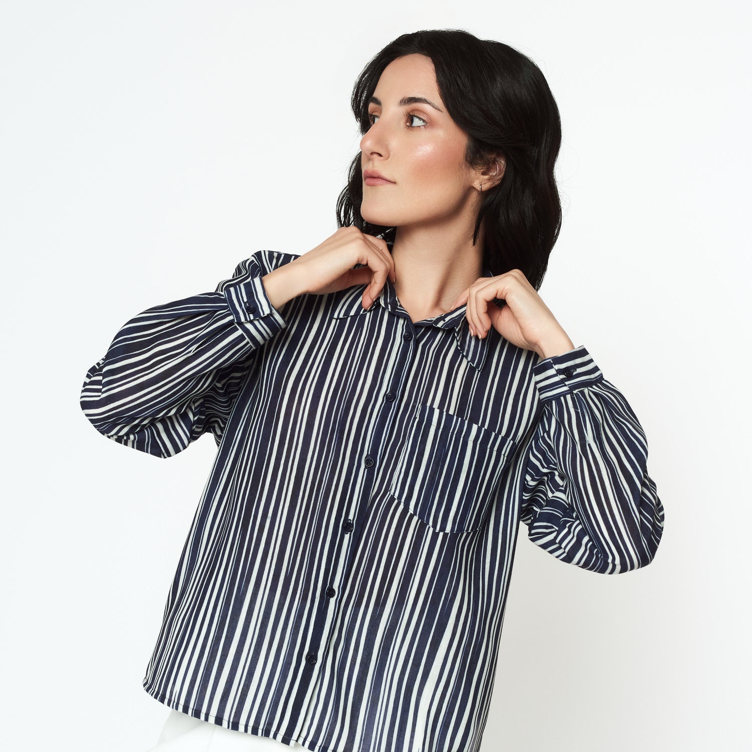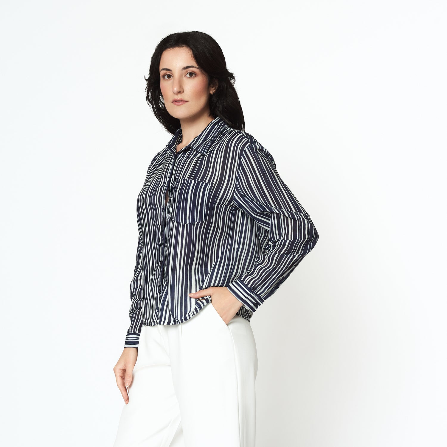 La Blusa Lanai en print es moderna y versátil. Su estampado añade un aire distintivo y sofisticado, ideal para transformar un outfit sencillo en uno lleno de estilo.