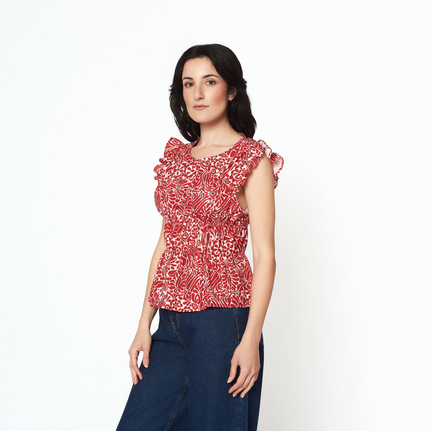 La Blusa Lisbon en print es ligera y sofisticada. Su diseño estampado aporta frescura y estilo, perfecta para darle vida a un outfit casual chic