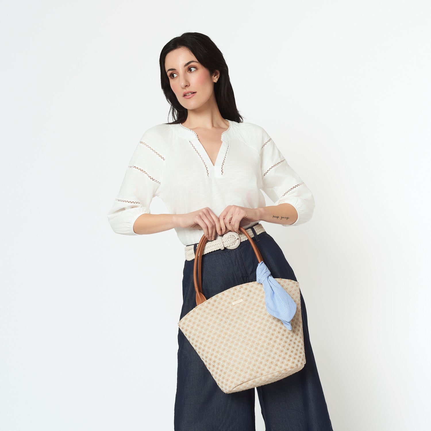 La Cartera Laisy en beige es elegante y funcional. Su tono neutro la convierte en una pieza versátil que complementa cualquier look con un aire sofisticado.