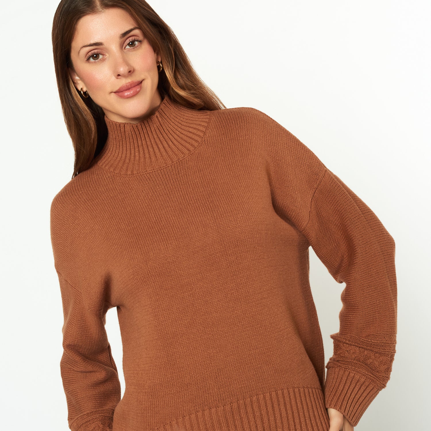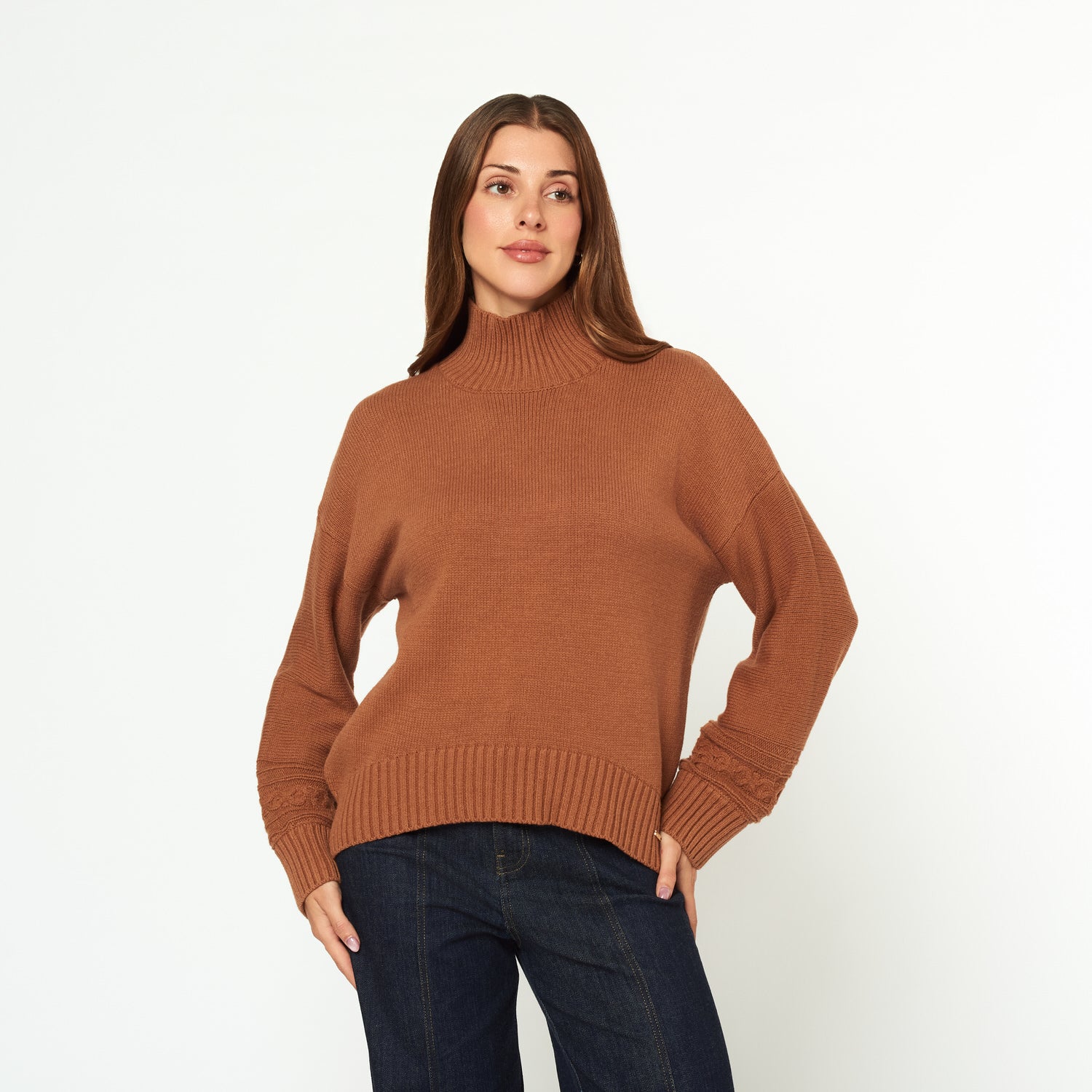 Con la chompa Minerva en color camel, tu estilo será siempre chic. Hecha de tejido, su diseño cómodo es ideal para combinar con jeans o tus pantalones favoritos.