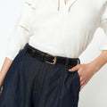 La Correa Laila en negro es elegante y atemporal. Su tono neutro la convierten en un accesorio versátil que realza cualquier outfit con sofisticación.
