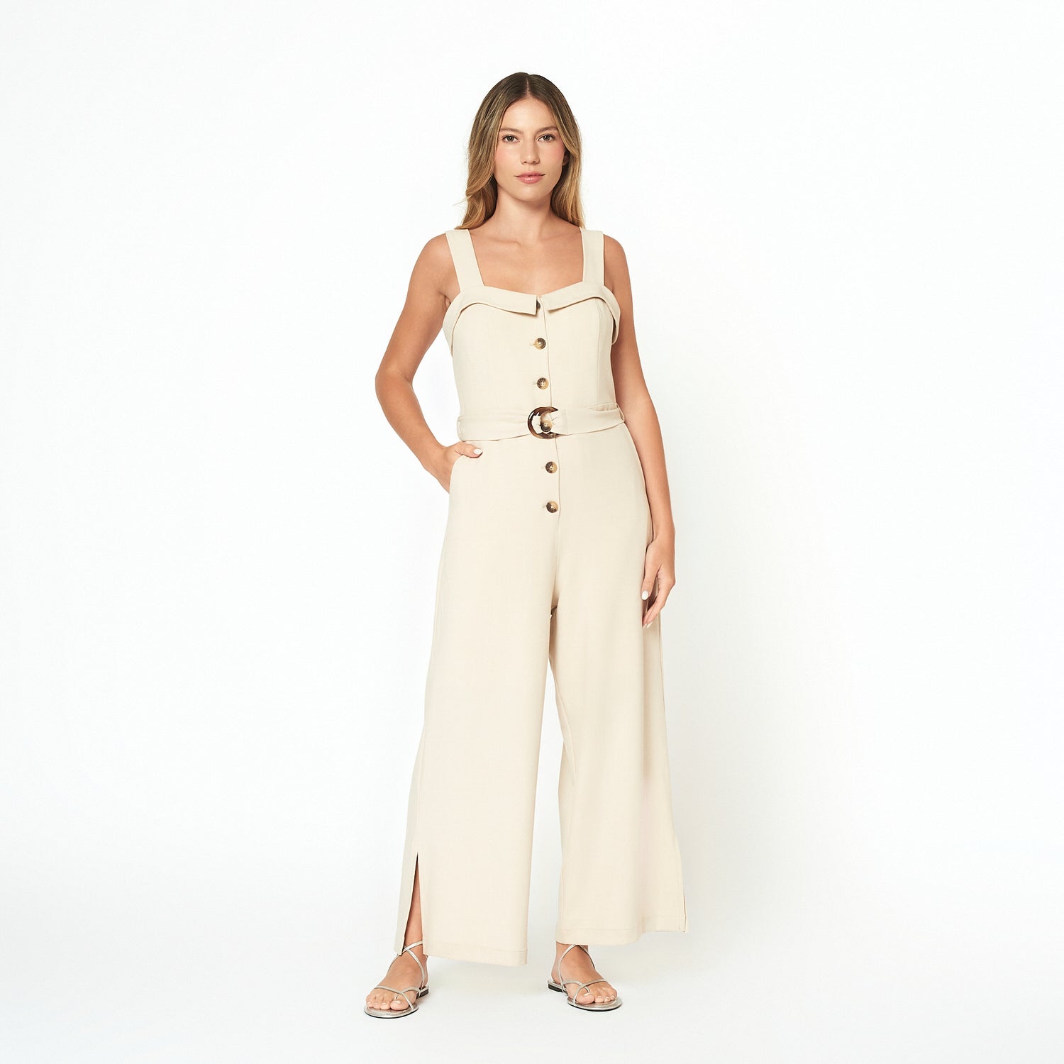 El Enterizo Camila en arena es elegante y fresco. Su tono neutro lo convierte en una pieza versátil que aporta sofisticación y estilo sin esfuerzo.