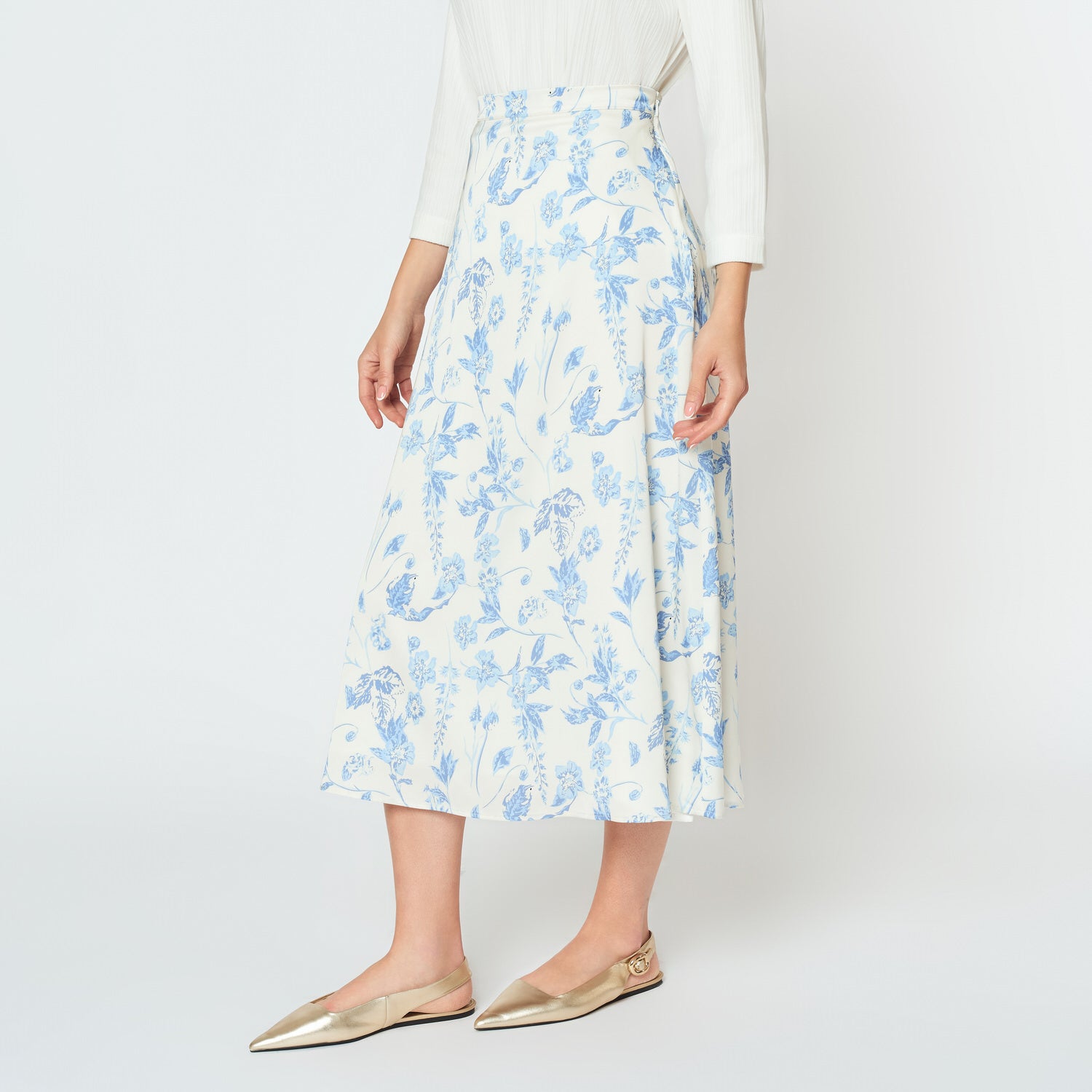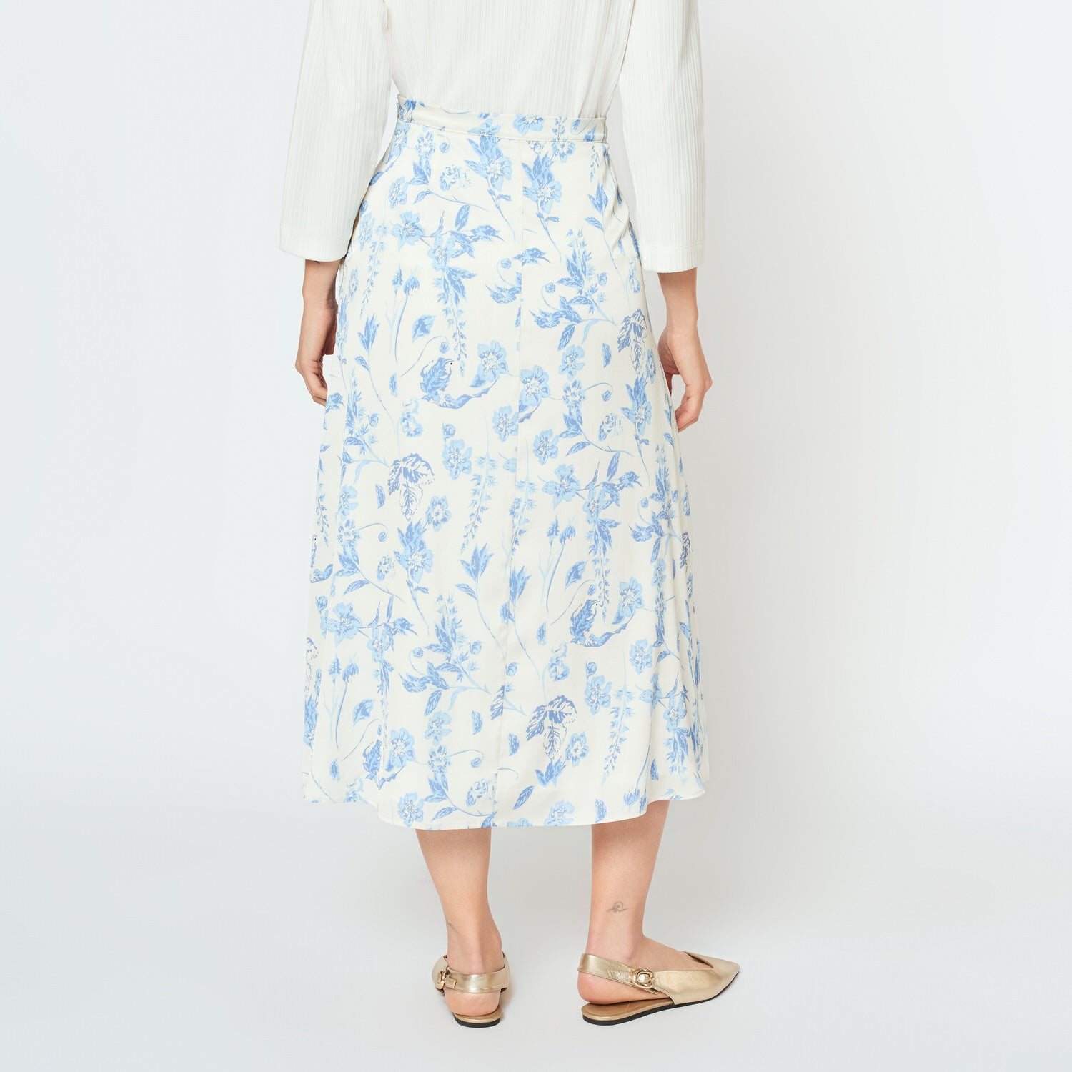 La falda Alondra con estampado floral en seda fluye con elegancia y estilo. Llévala con blusas lisas o tops ceñidos para un outfit femenino, ideal para ocasiones especiales o tardes con encanto.