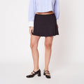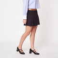 Añade un toque chic y elegante a tu conjunto con nuestra falda corta Circus confeccionada en sastre en un clásico color negro. Esta falda presenta plisados que le dan un toque refinado y suelto. ¡Una opción versátil y atemporal que te hará destacar con estilo en cualquier ocasión!