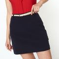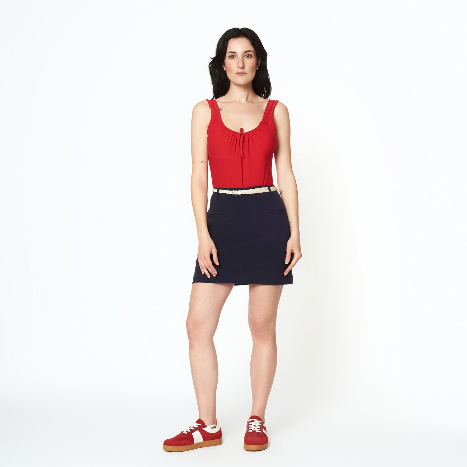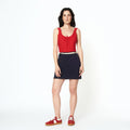La Falda Lidia en azul es fresca y elegante. Su tono profundo aporta sofisticación, ideal para crear un look moderno con un aire refinado