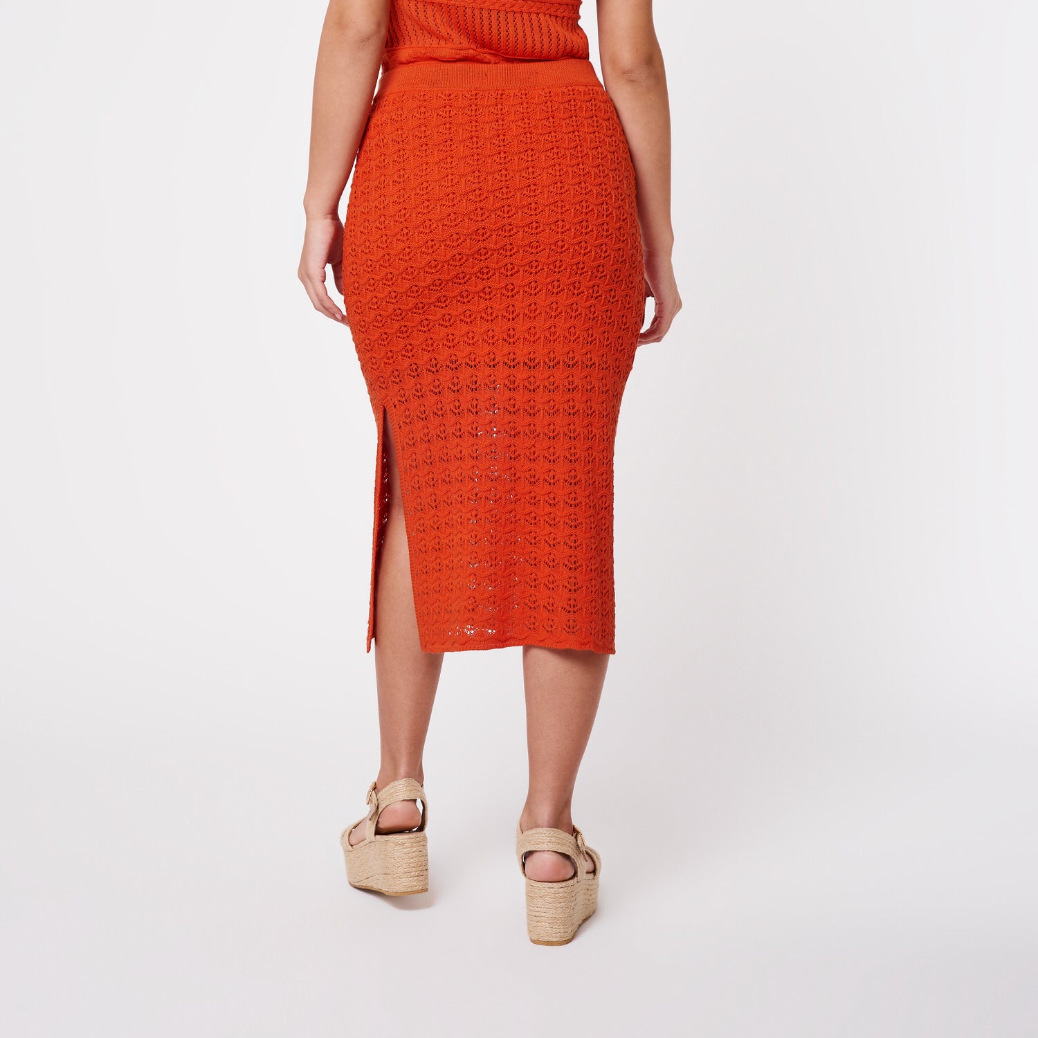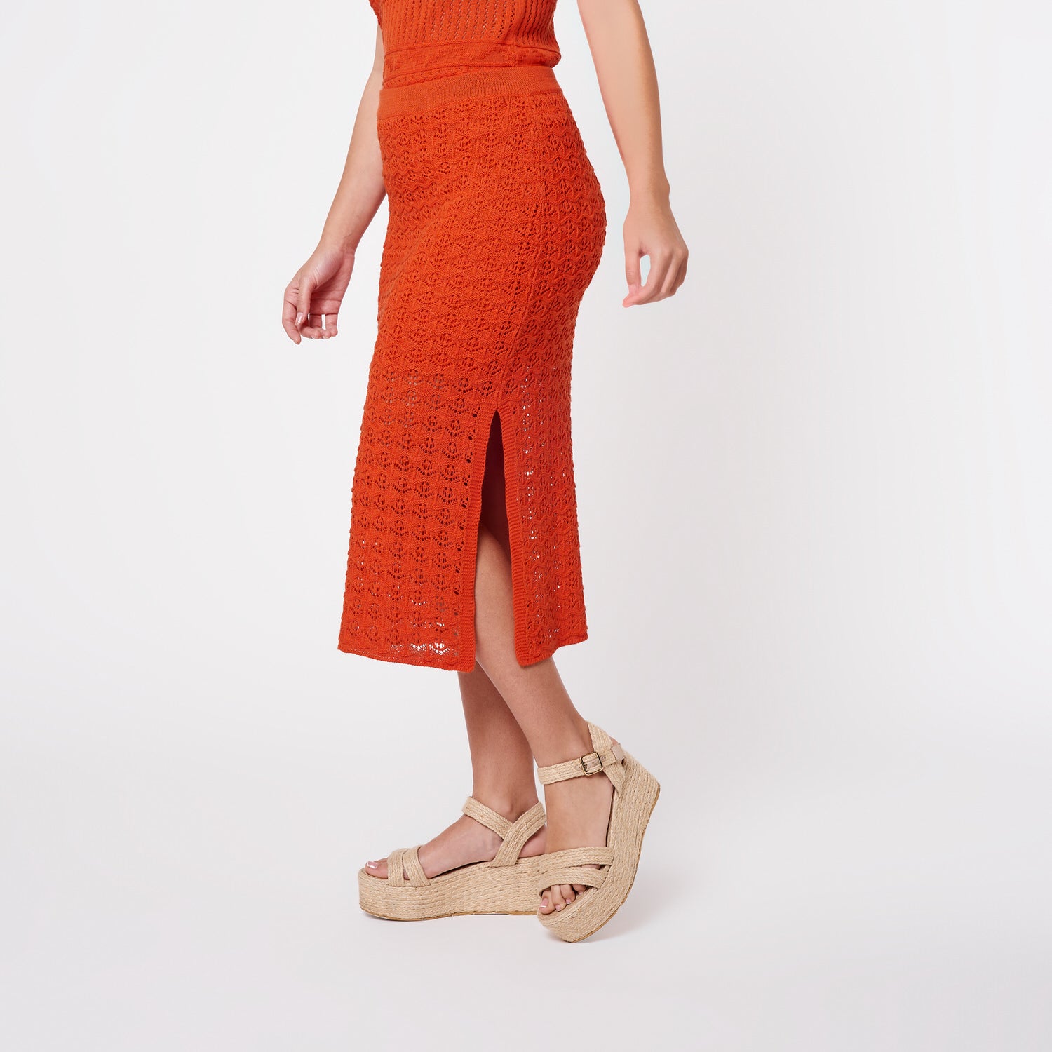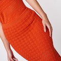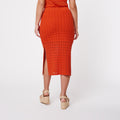 Luana es una falda hilo larga que destaca por su color terracota vibrante y diseño favorecedor que estiiliza la figura.