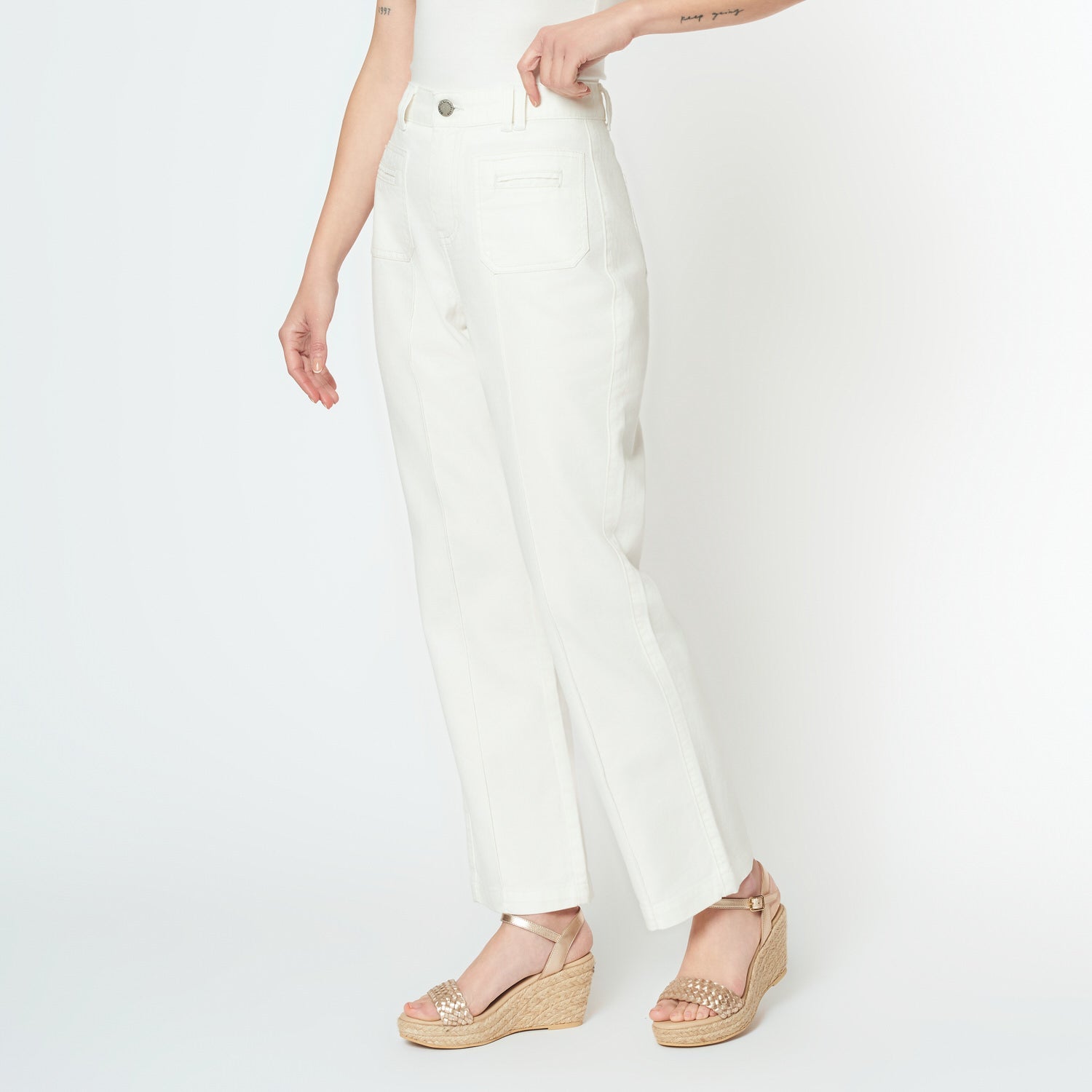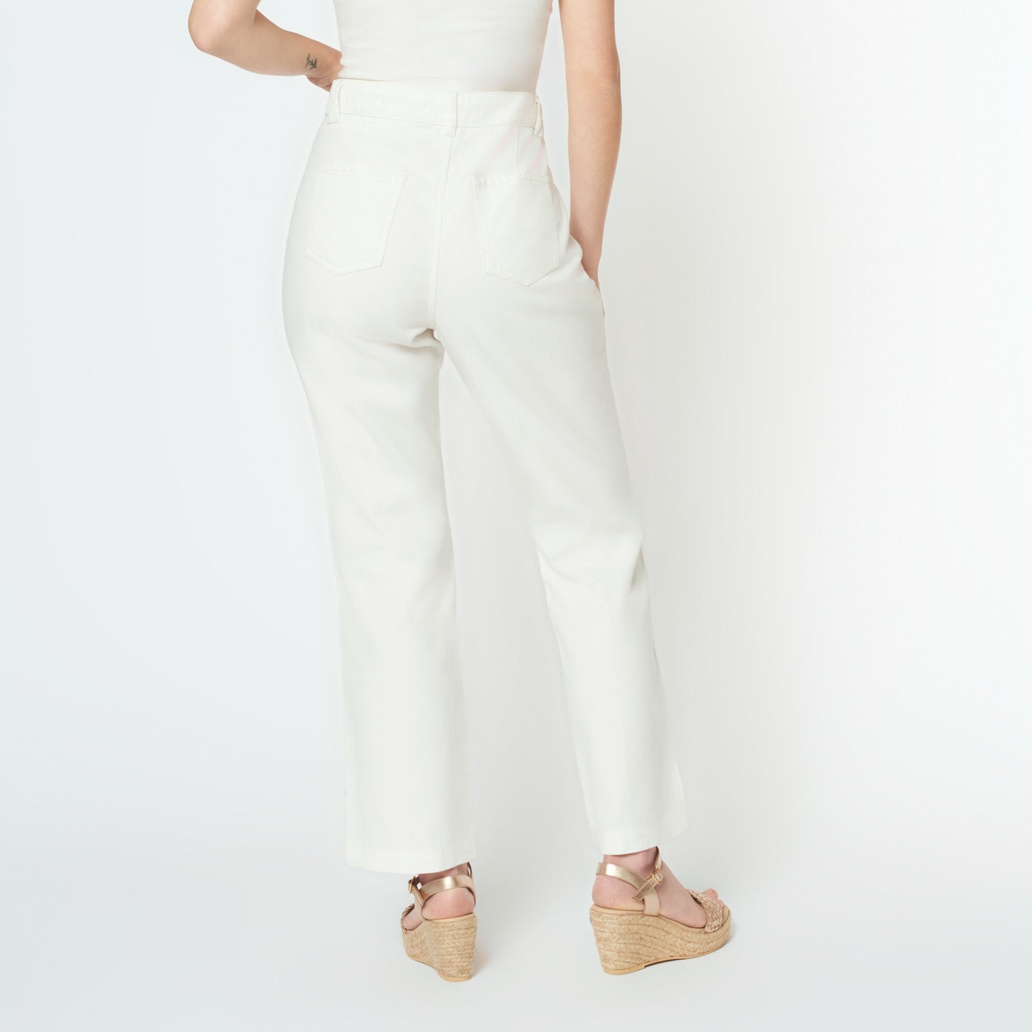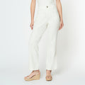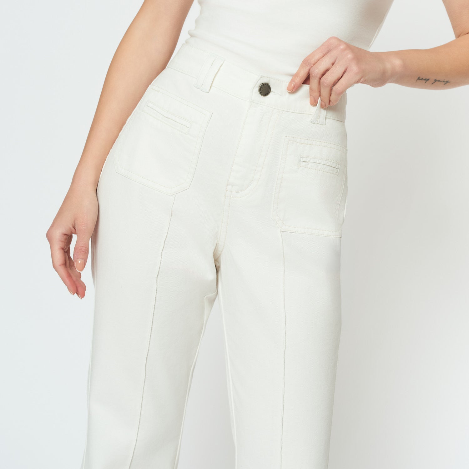 Irradia estilo con nuestro jean Reba en color hueso de denim. Es una prenda ideal para añadir un toque de glamour y sofisticación a cada uno de tus outfits, así como para elevar cualquier conjunto casual.