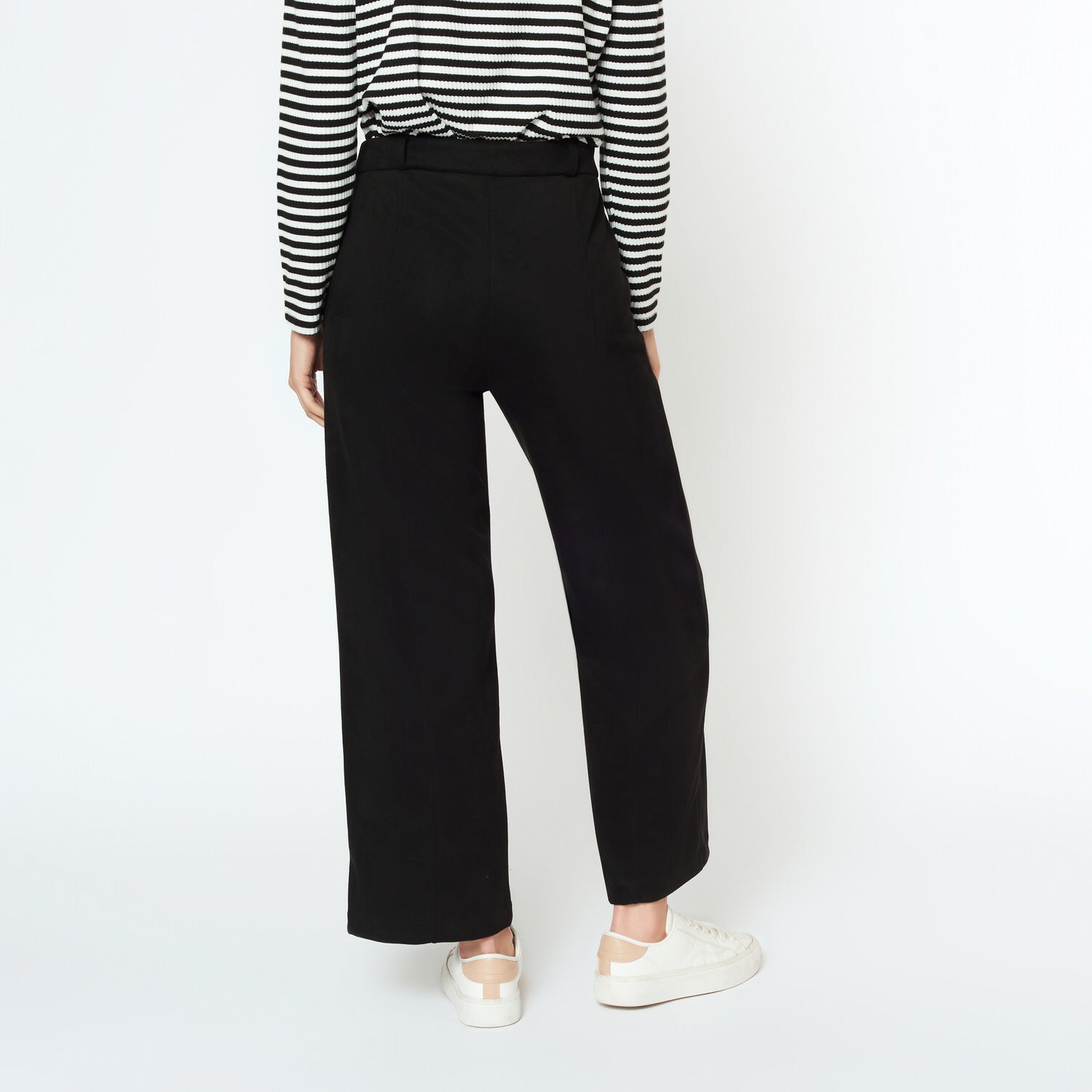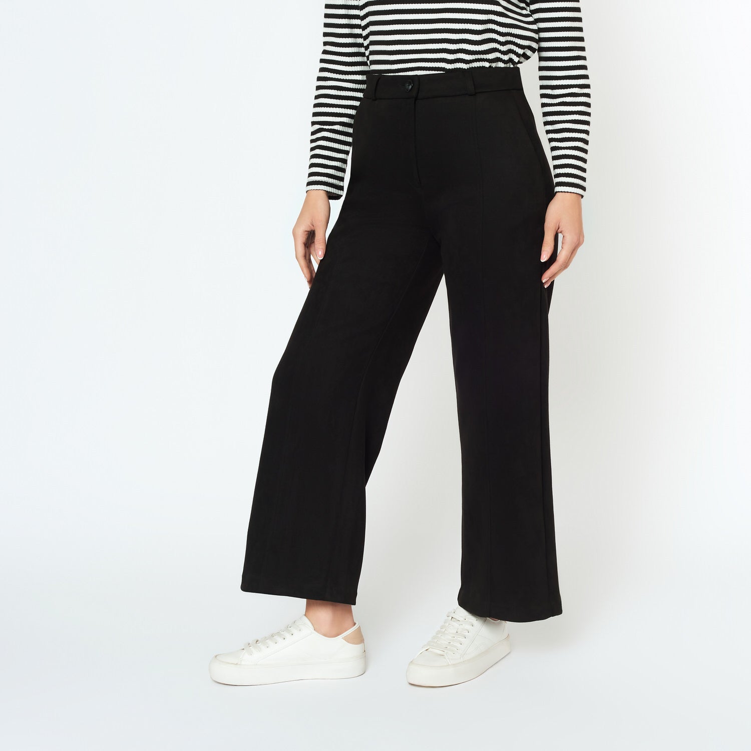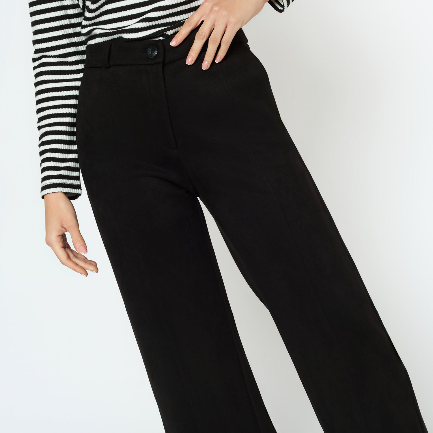 El pantalón Amelina, confeccionado en gamuza color negro, tiene un acabado sofisticado y suave al tacto. Perfecto para looks nocturnos o de media estación, combínalo con blusas satinadas o tejidos ligeros para resaltar su textura.