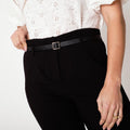 Officewear must-have! Nuestro Pantalón Carmela es un pantalón de sastre color negro de estilo clásico y sofisticado que cuenta con un corte recto medium waist y correa que te hará lucir un look impecable.