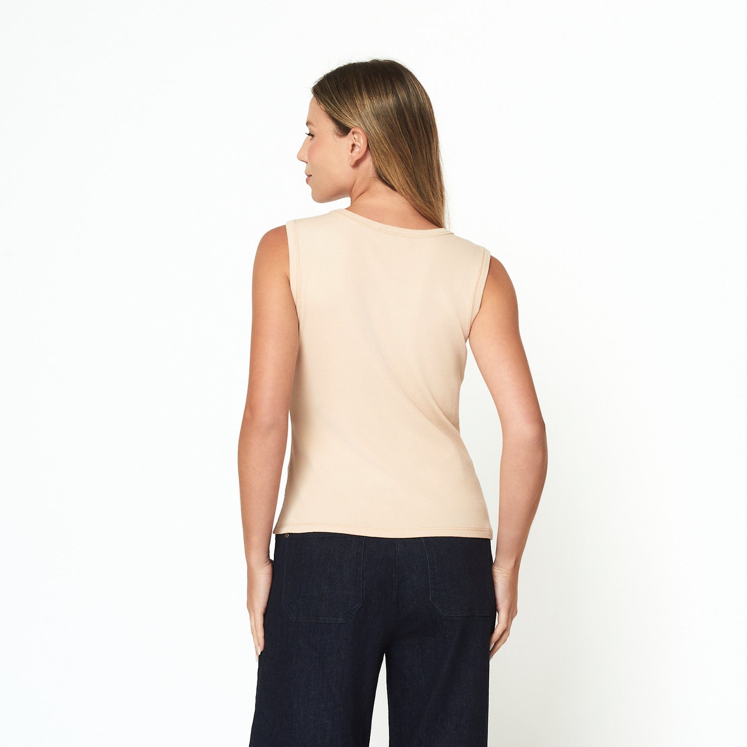 El Polo Caterina en beige es sobrio y sofisticado. Su tonalidad neutra lo convierte en una prenda elegante y fácil de combinar.
