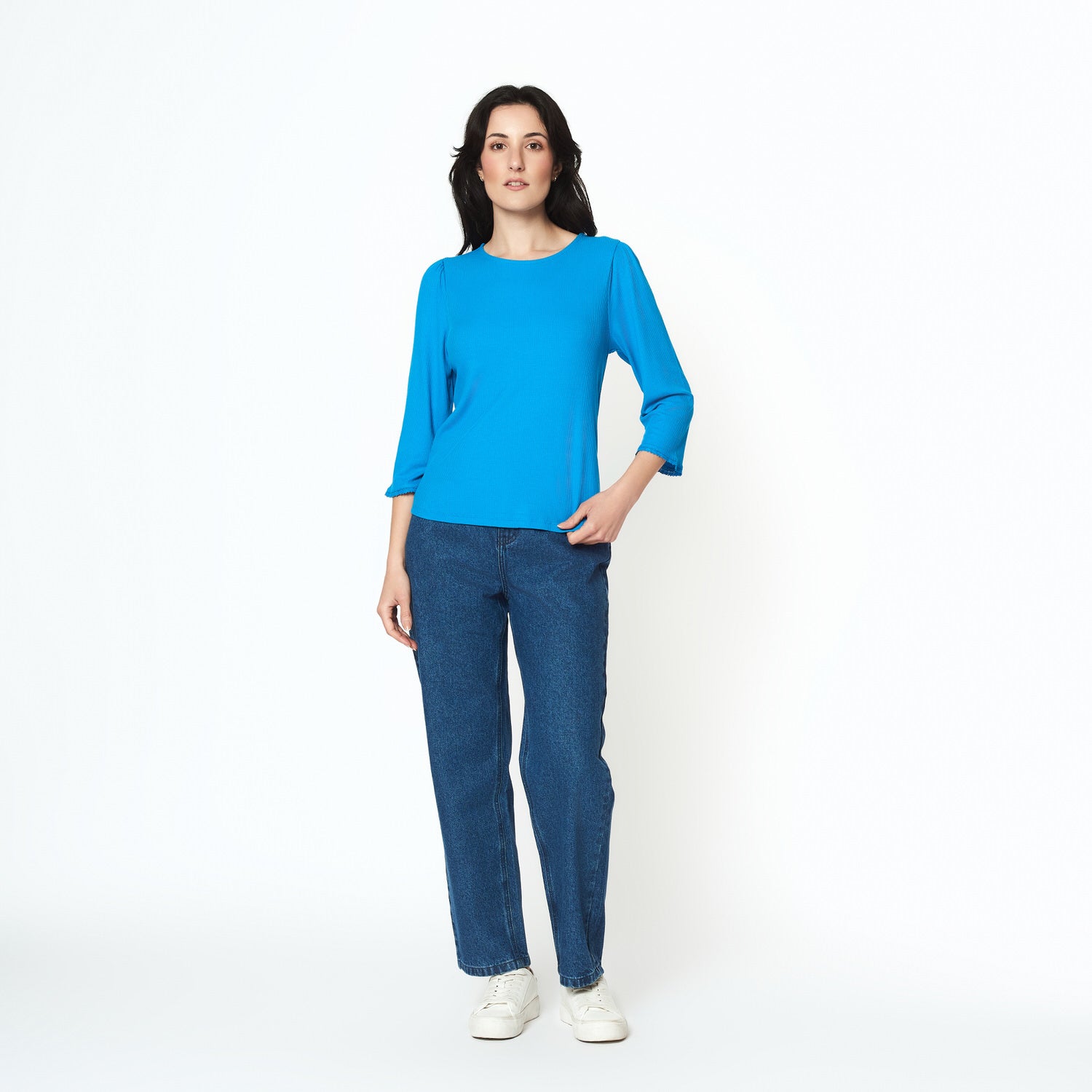El Polo Fidela en azul transmite frescura y modernidad. Su color intenso eleva cualquier look, convirtiéndolo en una prenda clave para un estilo elegante y actual.