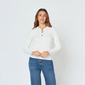 El polo Marina es la esencia de la elegancia casual. Confeccionado en tejido en un combinable color hueso, su diseño clásico con un toque moderno lo convierte en una prenda versátil. Ideal para combinar con jeans o faldas, ¡es un básico que no puede faltar en tu armario!.