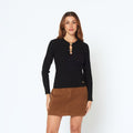 El polo Marina es la esencia de la elegancia casual. Confeccionado en tejido en un combinable color negro, su diseño clásico con un toque moderno lo convierte en una prenda versátil. Ideal para combinar con jeans o faldas, ¡es un básico que no puede faltar en tu armario!.