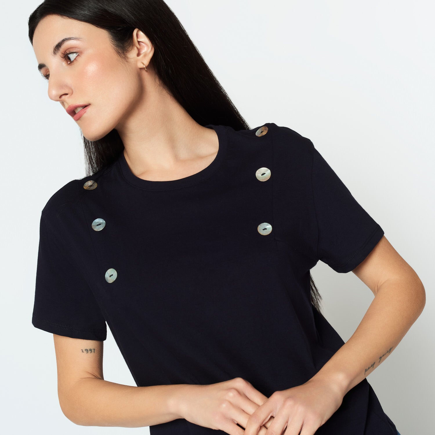 El polo Bettina en tono azul está confeccionado en jersey, un tejido suave que acompaña tus movimientos con comodidad. Llévalo con faldas de denim o pantalones de lino para un estilo relajado y chic.