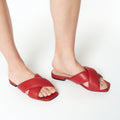 La Sandalia Lilith en rojo es audaz y sofisticada. Su tono vibrante aporta fuerza y estilo, ideal para destacar en un look elegante con un toque de carácter.