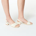 La Sandalia Lituania en crema es fresca y refinada. Su tono neutro la convierte en el complemento ideal para un look elegante y atemporal.