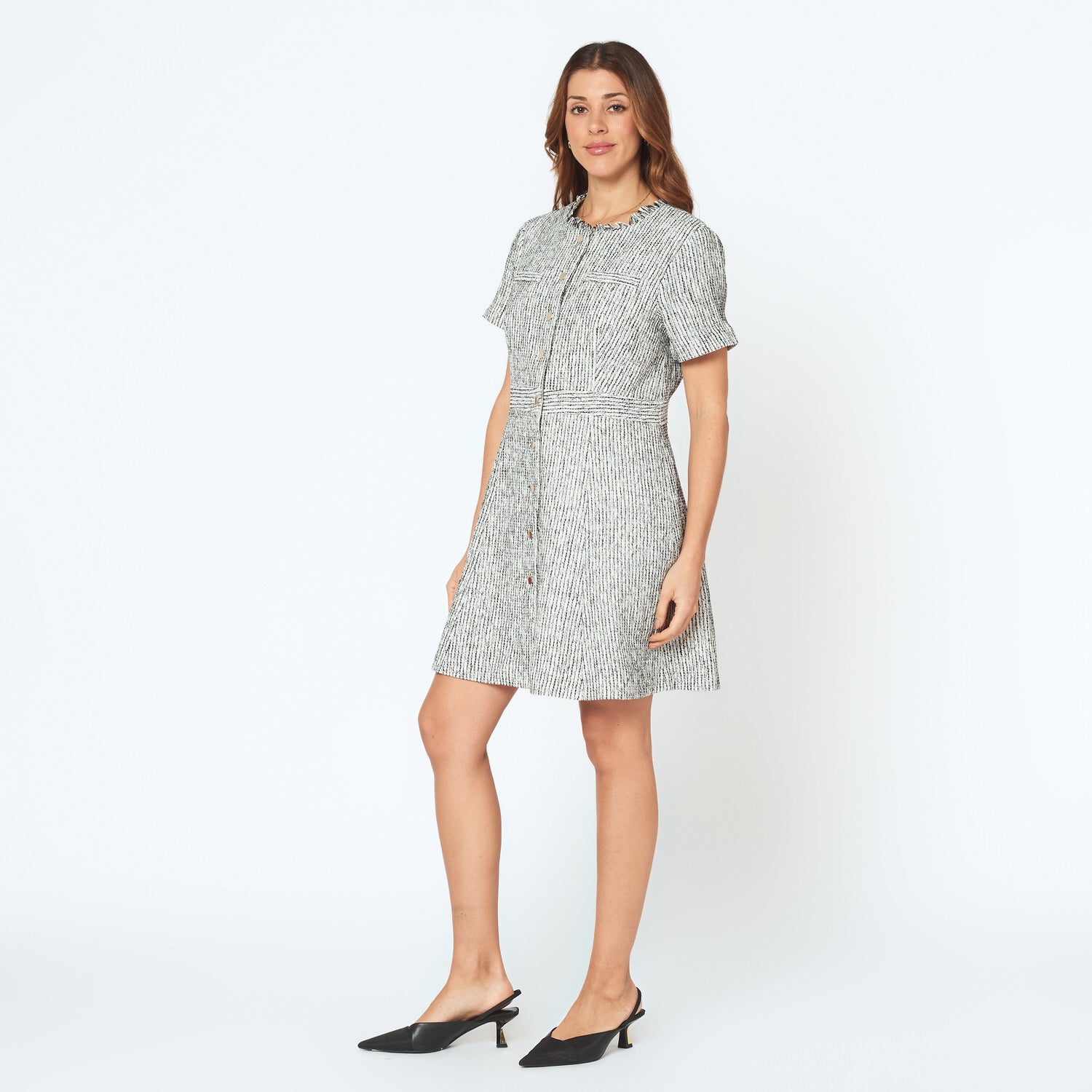 Descubre la elegancia con el vestido Milu. Confeccionado en tweed en un delicado color arena, su diseño moderno y estilizado es perfecto para lucir fabulosa en cualquier evento. Combínalo con tus accesorios favoritos y disfruta de un look deslumbrante.