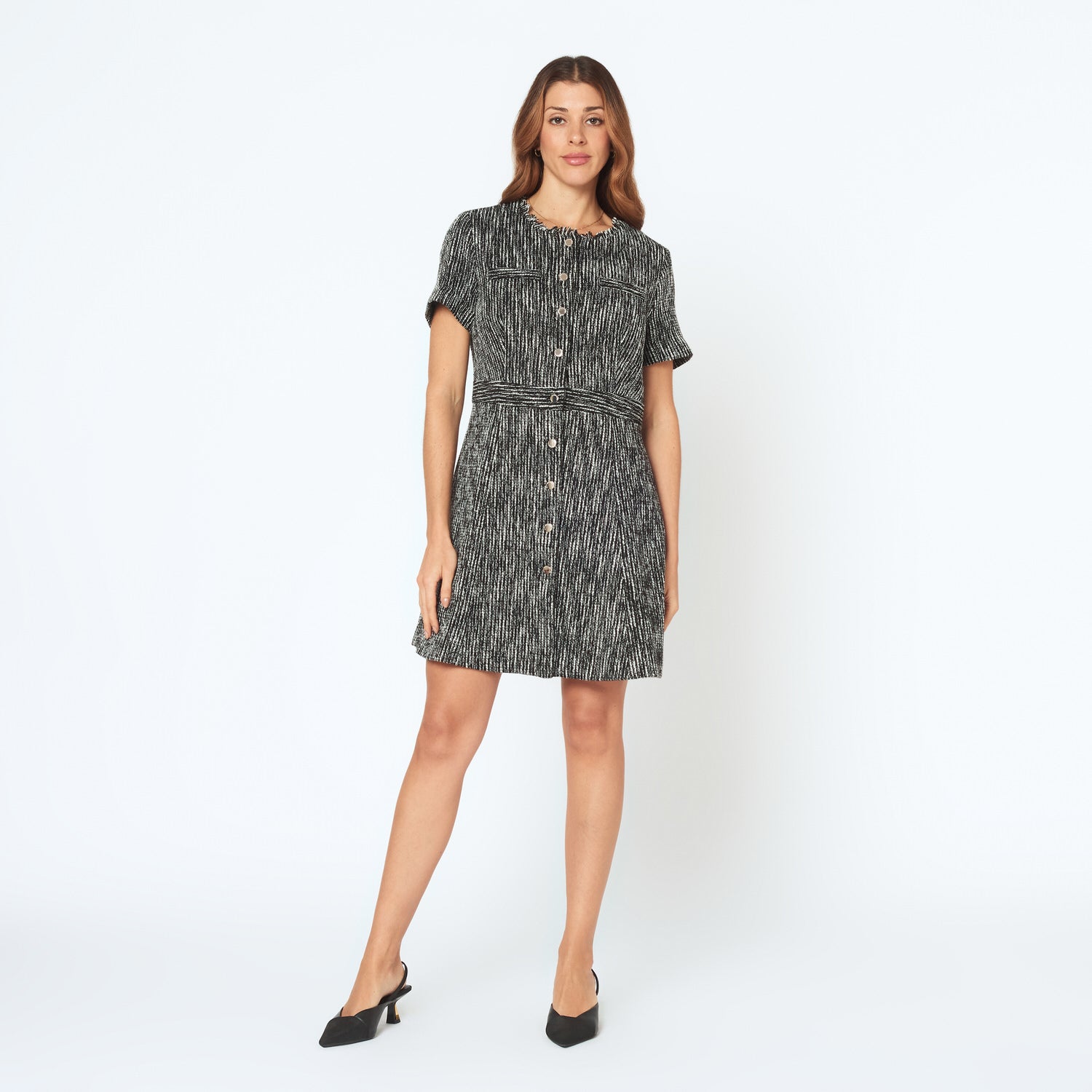 Descubre la elegancia con el vestido Milu. Confeccionado en tweed en un delicado color negro, su diseño moderno y estilizado es perfecto para lucir fabulosa en cualquier evento. Combínalo con tus accesorios favoritos y disfruta de un look deslumbrante.