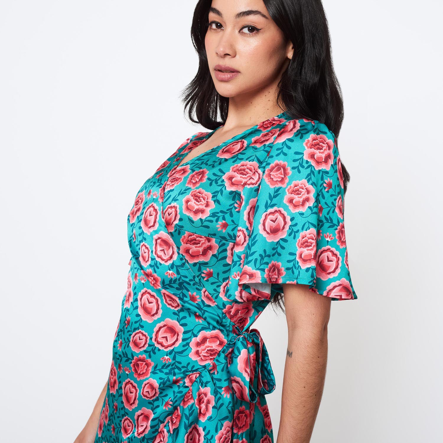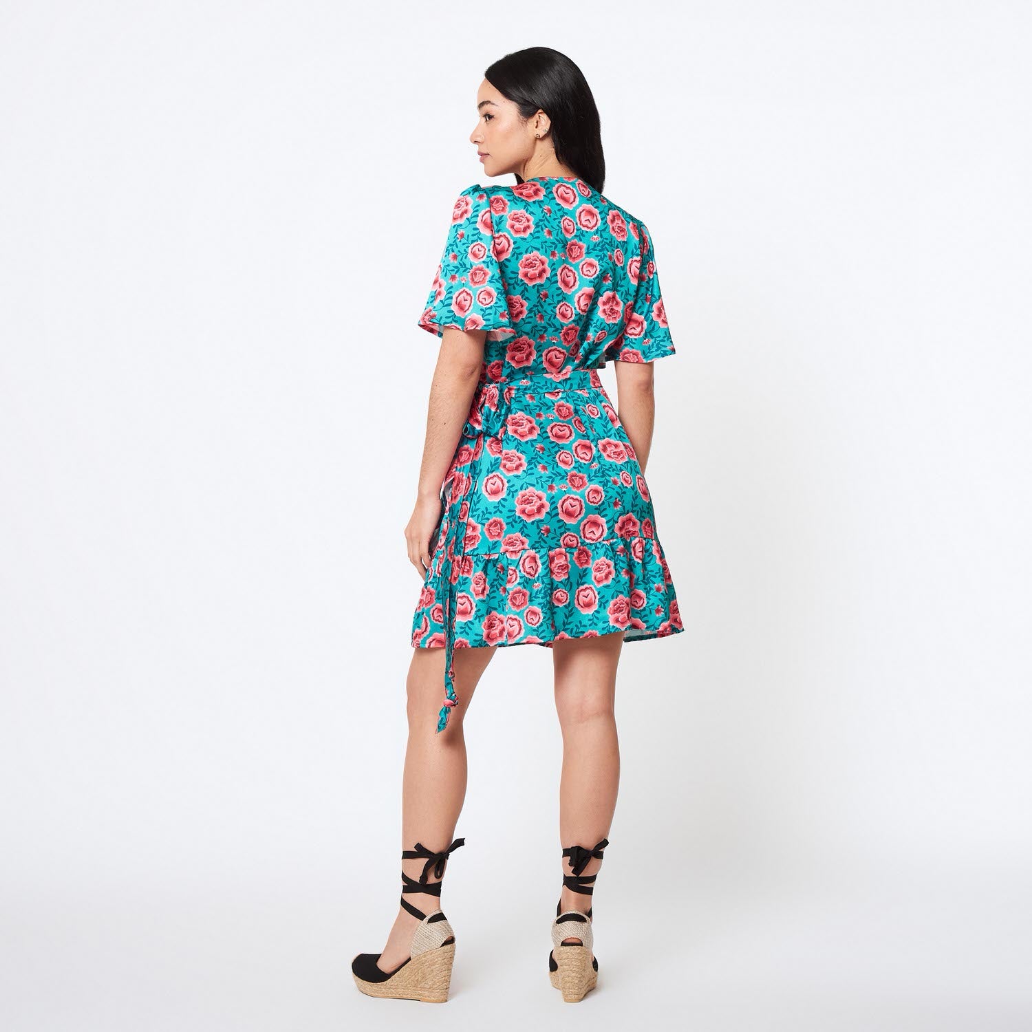Nuestro Vestido New Priscila, confeccionado en satin en un encantador print floral, destaca por su diseño envolvente con detalles de volantes en falda y mangas que brindan un look más femenino y vibrante. ¡Amarás como te hará lucir!