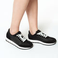 La Zapatilla Laos en negro es versátil y sofisticada. Su color sobrio la convierte en el calzado perfecto para un look urbano con elegancia.